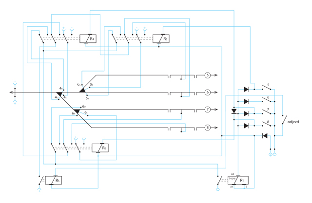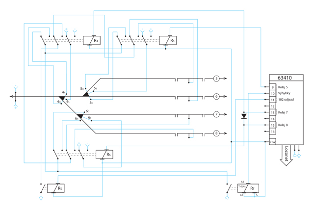 9 49 5|1 Kolej 5 - uvolnění relé pro napájení srdcovek výhybek