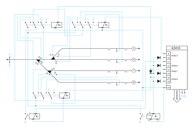 • Schéma elektrického zapojení skrytého nádraží „malého okruhu” dvoukolejné trati ve formátu pdf a jpg