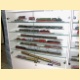 Trávil jsem běháním po Všestarech většinu dopoledne a do Deltaxu jsem dorazil po poledni, až parní vlak odjel zpět do Hradce Králové a v prodejně bylo volněji. Vitríny s původně nabízeným sortimentem v zadních prostorách prodejny byly vyklizeny a zcela je zaplnily modely H0 tradičních výrobců. Jako příznivce TT nijak nebudu vystavované modely hodnotit. Jen jsem více prohlížel produkci firmy PIKO a ROCO, konrétně vystavované modely elektrických lokomotiv Taurus. Firma PIKO letos rozšířila svoje působení na trhu ve velikosti TT právě výrobou levných lokomotiv této řady. Mohl jsem tak porovnat, jak je Taurus zpracovaný oběma zmíněnými firmami ve velikosti H0. O tom, že je výrobní program ve velikosti H0 nesrovantelný se stagnující velikostí TT, nemá snad smyl hovořit. Budiž však útěchou, že se snad blýská na lepší časy. Firma PIKO bude určitě pokračovat i dalšími modely pro velikost TT a na trh mezitím vstoupil další výrobce, firma Kühn.