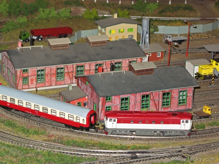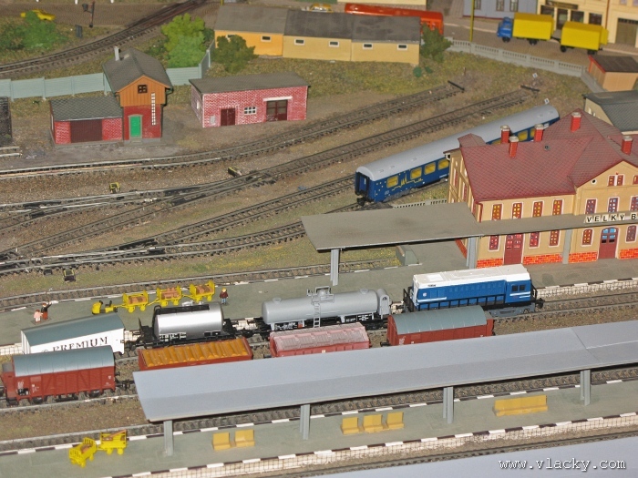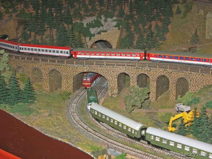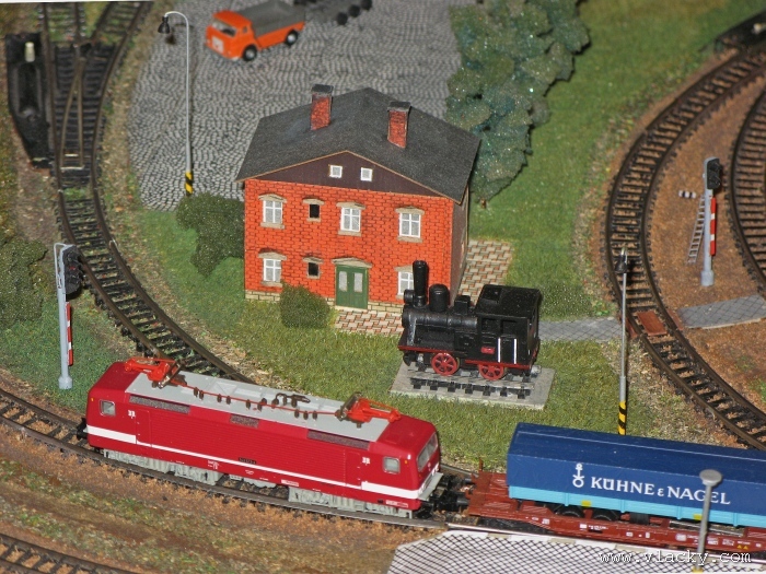 Zevrubnému popisu kolejiště jsem se věnoval již v loňské reportáži. Proto jsem se spíše zajímal o provoz na kolejišti a pokukoval jsem, zda-li se již modeláři pustili do modernizace hlavní stanice Velký Brod. Z vlastní zkušenosti nejde jen o prostou výměnu původného plechového kolejiva tvaru obráceného U za moderní profilové, ale zejména ve stanicích musí dojít při výměně výhybek ke změně geometrie zhlaví. Původní výhybky s úhlem odbočení 22,5 st. je nutné vyměnit za novější s úhlem odbočení 15 st. a menším. Jak je vidět např. na záběru levého zhlaví z minulé výstavy nebo aktuálnějšího pohledu z jiného úhlu, rekonstrukce bude určitě náročná. Z fotogalerie je patrné, že veškerý provoz na hlavní dvojkolejné trati i vedlejší jednokolejné byl zajišťován motorovou trakcí. Na dvojkolejce mohly soupravy vlaků jezdit opravdu v rychlém sledu. Provoz jednokolejné trati byl limitován kapacitními možnostmi trati, mezilehlé stanice Lhotka a koncové stanice Kopečná. Tentokrát jsem věnoval samostatnou fotogalerii i menšímu kolejišti v modelové velikosti N. S tímto kolejištěm jsem se setkal poprvé a snažil jsem se aspoň několika záběry přiblížit modelovaný námět. Jak už jsem zmínil při jiných výstavách, modelová velikost N umožňuje na stejném prostoru vymodelovat ze zvoleného námětu daleko větší výsek. Zároveň je však vhodné, aby návštěvník mohl takové kolejiště pozorovat zblízka a vychutnat si tak všechny detaily. V prostorách po levé straně byly navíc umístěny vitríny s výstavou modelů lokomotiv a vozů. Návštěvu výstavy mohu jen doporučit. Během mého asi dvouhodinového okukování v poledním čase nebyly u vystavovaných kolejišť žádné tlačenice a tak si každý návštěvník mohl výstavu vychutnat. Další informační zdroje: