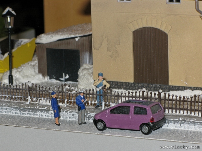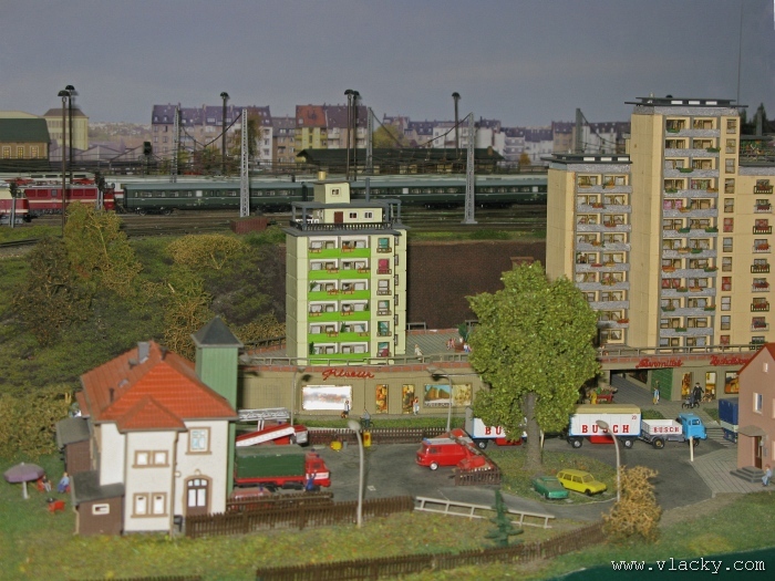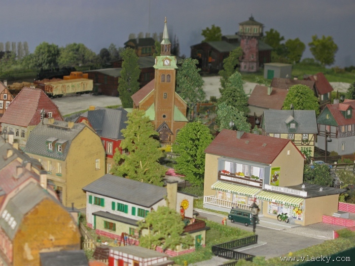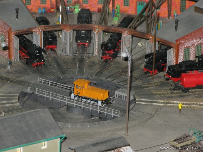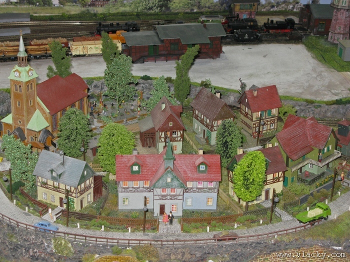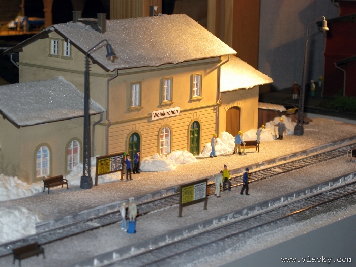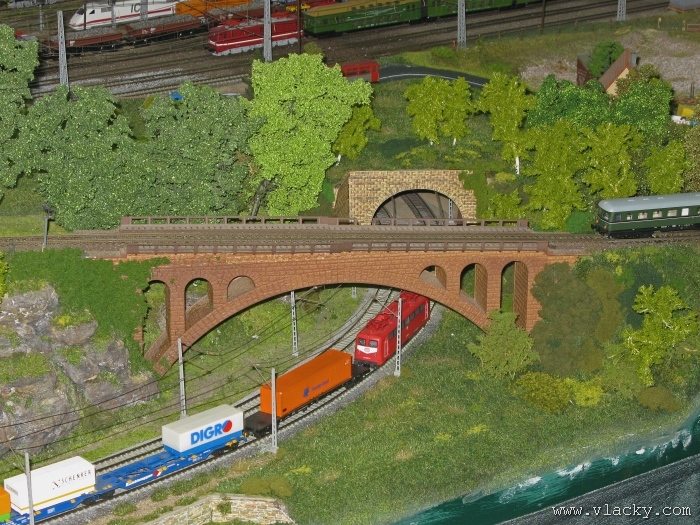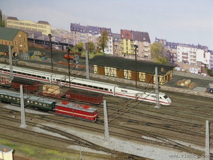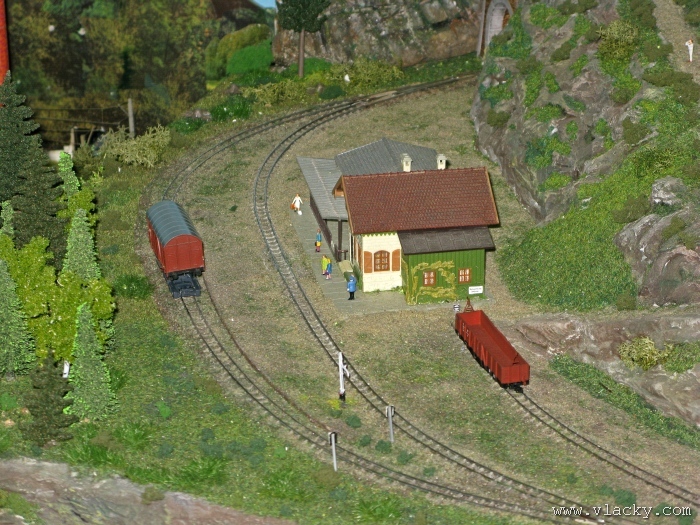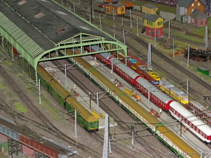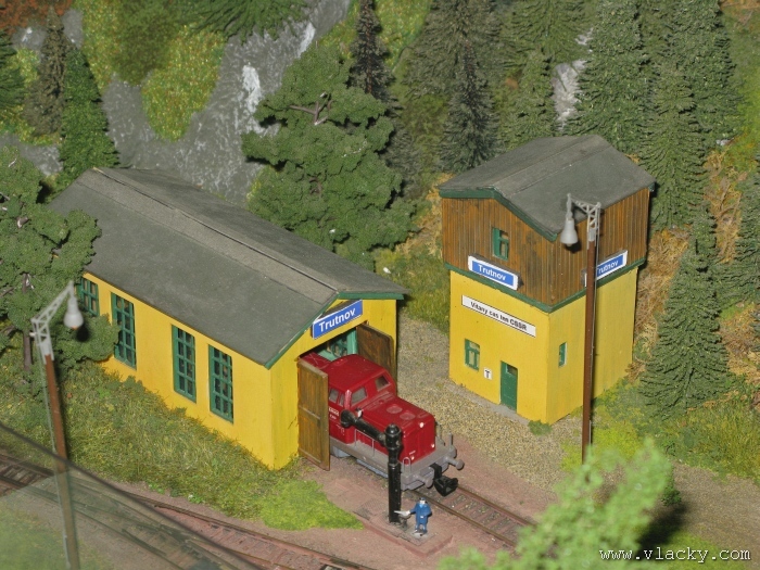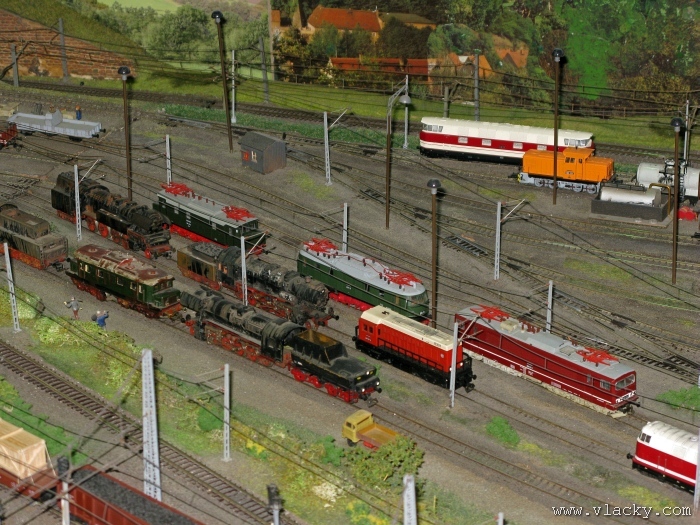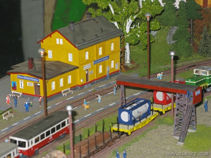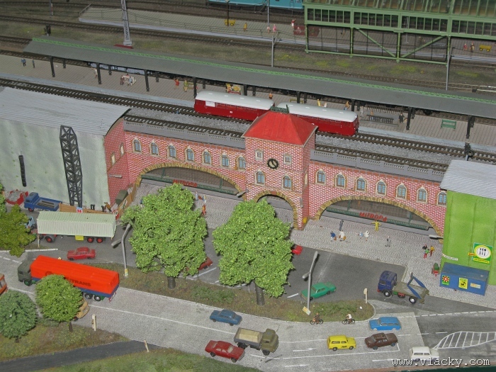 Rychle jsem přešel přes město k tělocvičně ZŠ Komenského, kde se výstava konala. Asi nejvíce času jsem strávil u největšího kolejiště z Německa, samozřejmě v "mé" modelové velikosti TT. Hlavním námětem bylo velké nádraží, které mělo vlevo odstavné a nákladové nádraží a vpravo byla velká hala osobního nádraží. Vzadu se pyšnilo velké lokomotivní depo. Hlavní dvojkolejná trať se klikatila krajinou a mizela v tunelu, kde pokračovala do skrytých nádraží. Po hlavní trati se proháněly dlouhé soupravy vlaků, osobní vlaky a rychlíky zajížděly do haly osobního nádraží, nákladní vlaky projížděly kolem a zastavovaly až v nákladním nádraží, případě jako NEx pokračovaly dále. V popředí tohoto velkého nádraží bylo v náznaku vymodelováno město s výškovými budovami a v přednádraží panoval čilý dopravní ruch. V pravé části kolejiště byla malá stanička na úzkorozchodné trati, po které občas projel výletní parní vlak. V levé části kolejiště mě zaujala lokálka, která zajišťovala dopravní oblužnost menšího městečka. Byl pracovní den, na lokálce vrcholila řepná kampaň a z místní pily byly odváženy vozy Es naložené dřevem. Na tomto kolejišti se mi líbilo dobře zpracované pozadí, které při pohledu na kolejiště dodávalo pocit správné perspektivy. Další část výstavní plochy patřila firmě Auhagen s jejími diorámaty. Bylo možné vidět i zajímavé zpracování zimních motivů se vším, co k zimě patří, např. předvánoční stánkový prodej nebo zasnšžené nádraží s odhrnutými kopami sněhu. Ve vitrinách vystavovala firma Loco zajímavé sety, které byly vyráběny na zakázku a vůbec tak nepřišly do prodejní sítě. Dále zde byla ukázka současné produkce s tolik ohlašovaným novým samovýsypným vozem Facs/Sas. Tento vůz je přepracován z nových forem a vybaven kinematikou. Technickým zpracováním se tak dostává na úroveň továrních modelů Tillig, cenově je však převyšuje. Tyto vozy určené k prodeji budou ve srovnání s tímto vystavovaným vzorkem jednodušší. Budou mít jen základní potisk, zcela bude chybět potisk na rámu, budou bez krycích klapek a nebudou nabarveny kotvy, plošiny a nárazníky. Firma Tillig kromě nezbytného ukázkového kolejiště představila ve vitrinách nejnovější modely. Zmínil bych např. připravovanou elektrickou lokomotivu BR 189 a připravovaný nákladní vůz na uhelný prach. Téměř hotova je elektrická lokomotiva BR 103, která bude vyráběna v kooperaci s firmou Beckmann. K vidění na výstavě toho bylo samozřejmě daleko více. Zmíním třeba kolejiště s námětem divokého západu v modelové velikosti H0, nebo další kolejiště v modelové velikosti TT s námětem provozu na českých tratích. Kolem byly další vitríny s produkcí méně známých malosériových výrobců. Nesmím ani opomenou velké klubové kolejiště KŽM Trutnov, které vídávám pravidelně na modelářských výstavách. Právě na tomto kolejišti měly svou premiéru nové modely samovýsypných vozů Facs/Sas od firmy Loco. V ostrých obloucích na dvojkolejné trati působila ucelená souprava těchto vozů velmi dobře. To vše bude ke shlédnutí ve videoklipu. Další informační zdroje: