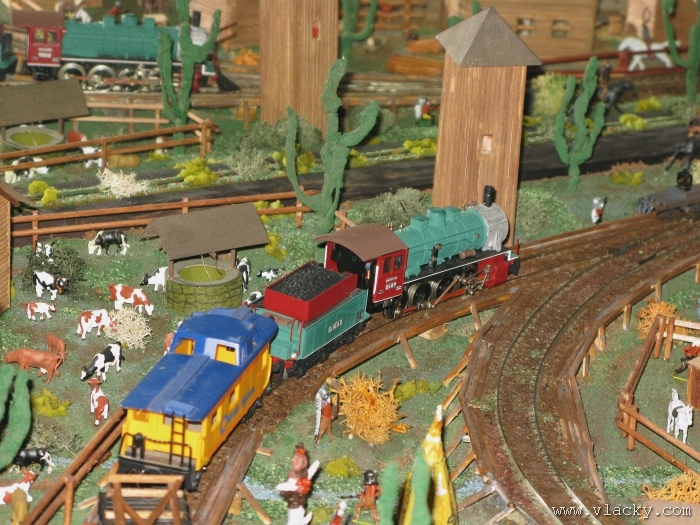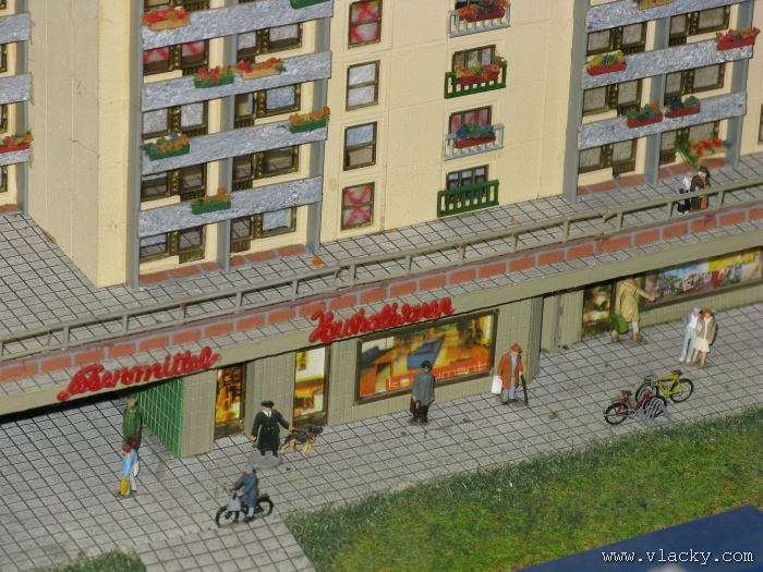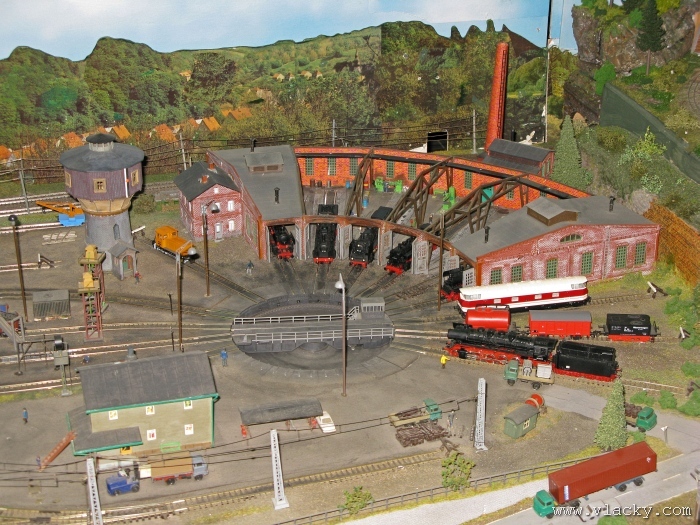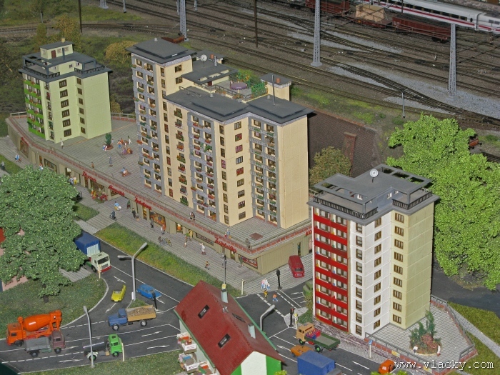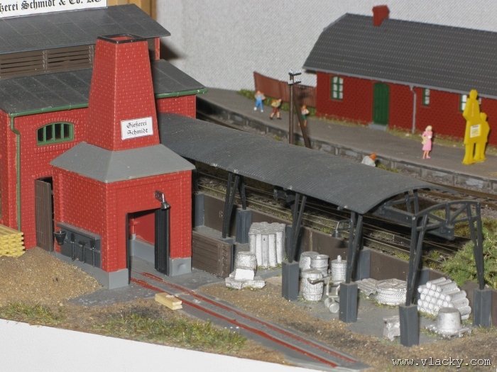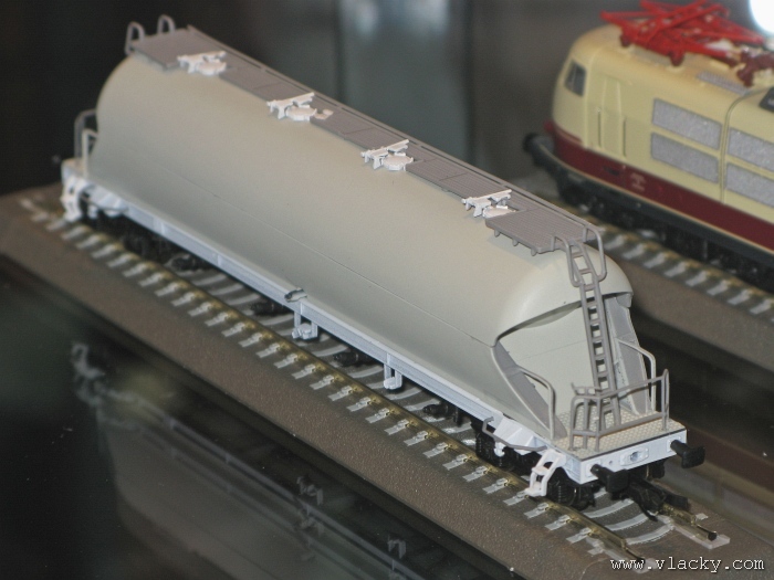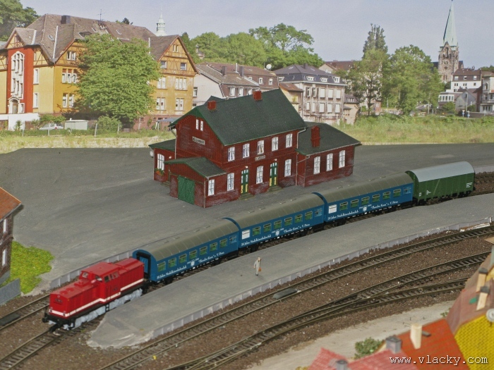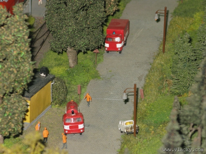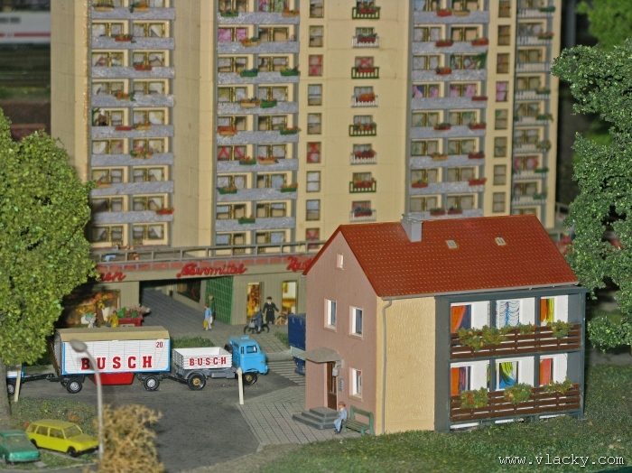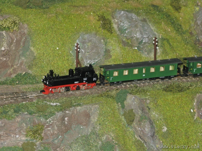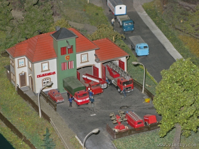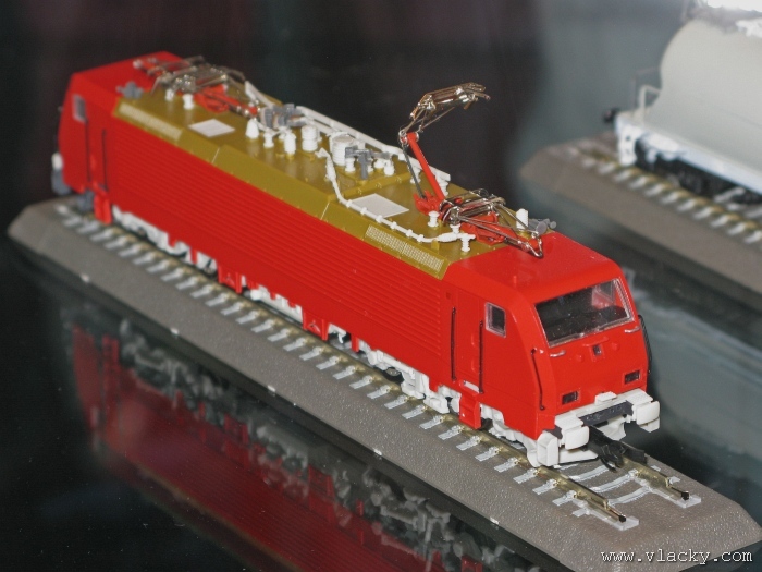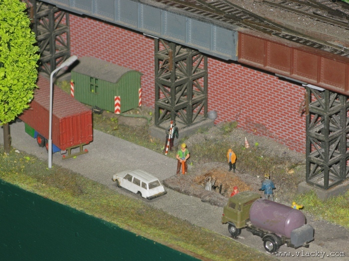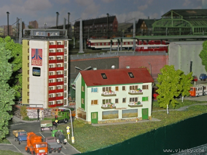 Rychle jsem přešel přes město k tělocvičně ZŠ Komenského, kde se výstava konala. Asi nejvíce času jsem strávil u největšího kolejiště z Německa, samozřejmě v "mé" modelové velikosti TT. Hlavním námětem bylo velké nádraží, které mělo vlevo odstavné a nákladové nádraží a vpravo byla velká hala osobního nádraží. Vzadu se pyšnilo velké lokomotivní depo. Hlavní dvojkolejná trať se klikatila krajinou a mizela v tunelu, kde pokračovala do skrytých nádraží. Po hlavní trati se proháněly dlouhé soupravy vlaků, osobní vlaky a rychlíky zajížděly do haly osobního nádraží, nákladní vlaky projížděly kolem a zastavovaly až v nákladním nádraží, případě jako NEx pokračovaly dále. V popředí tohoto velkého nádraží bylo v náznaku vymodelováno město s výškovými budovami a v přednádraží panoval čilý dopravní ruch. V pravé části kolejiště byla malá stanička na úzkorozchodné trati, po které občas projel výletní parní vlak. V levé části kolejiště mě zaujala lokálka, která zajišťovala dopravní oblužnost menšího městečka. Byl pracovní den, na lokálce vrcholila řepná kampaň a z místní pily byly odváženy vozy Es naložené dřevem. Na tomto kolejišti se mi líbilo dobře zpracované pozadí, které při pohledu na kolejiště dodávalo pocit správné perspektivy. Další část výstavní plochy patřila firmě Auhagen s jejími diorámaty. Bylo možné vidět i zajímavé zpracování zimních motivů se vším, co k zimě patří, např. předvánoční stánkový prodej nebo zasnšžené nádraží s odhrnutými kopami sněhu. Ve vitrinách vystavovala firma Loco zajímavé sety, které byly vyráběny na zakázku a vůbec tak nepřišly do prodejní sítě. Dále zde byla ukázka současné produkce s tolik ohlašovaným novým samovýsypným vozem Facs/Sas. Tento vůz je přepracován z nových forem a vybaven kinematikou. Technickým zpracováním se tak dostává na úroveň továrních modelů Tillig, cenově je však převyšuje. Tyto vozy určené k prodeji budou ve srovnání s tímto vystavovaným vzorkem jednodušší. Budou mít jen základní potisk, zcela bude chybět potisk na rámu, budou bez krycích klapek a nebudou nabarveny kotvy, plošiny a nárazníky. Firma Tillig kromě nezbytného ukázkového kolejiště představila ve vitrinách nejnovější modely. Zmínil bych např. připravovanou elektrickou lokomotivu BR 189 a připravovaný nákladní vůz na uhelný prach. Téměř hotova je elektrická lokomotiva BR 103, která bude vyráběna v kooperaci s firmou Beckmann. K vidění na výstavě toho bylo samozřejmě daleko více. Zmíním třeba kolejiště s námětem divokého západu v modelové velikosti H0, nebo další kolejiště v modelové velikosti TT s námětem provozu na českých tratích. Kolem byly další vitríny s produkcí méně známých malosériových výrobců. Nesmím ani opomenou velké klubové kolejiště KŽM Trutnov, které vídávám pravidelně na modelářských výstavách. Právě na tomto kolejišti měly svou premiéru nové modely samovýsypných vozů Facs/Sas od firmy Loco. V ostrých obloucích na dvojkolejné trati působila ucelená souprava těchto vozů velmi dobře. To vše bude ke shlédnutí ve videoklipu. Další informační zdroje: