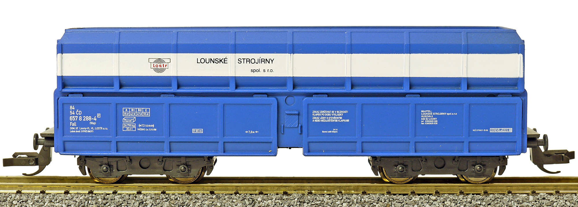 | nákladní samovýsypný vůz modrý s bílým pásem „Lostr“ |