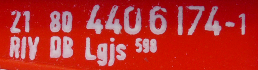| • 21 80 440 6 174-1 | → | nákladní, nezávislé nápravy, pevný rozchod, ve vlastnictví železniční správy, RIV, PPV |