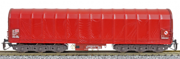 | nízkostěnný nákladní vůz červenohnědý s červenou plachtou |
