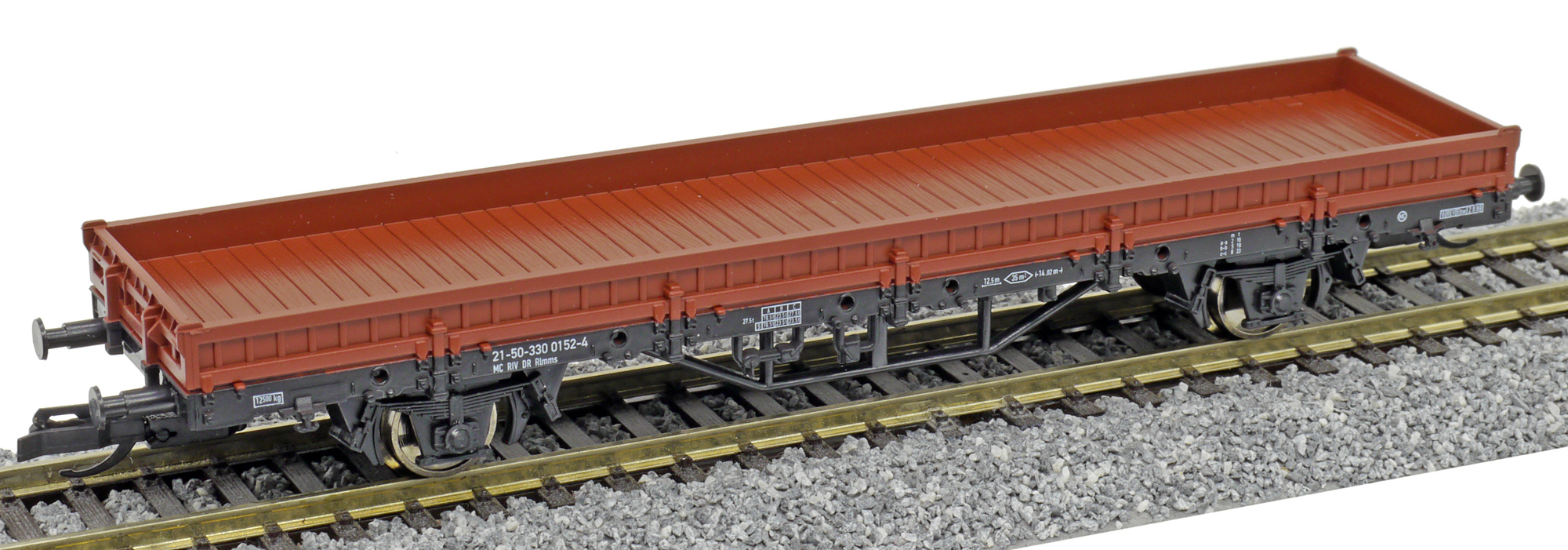 měřítko 1:120 - rozchod kolejí 12 mm kinematika krátkého spřáhla (KKK) podle normy NEM 358 117 mm - celková délka modelu přes nárazníky 2 - celkový počet náprav nebo rozložení náprav