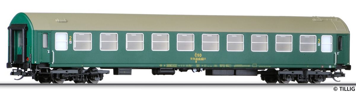 | rychlíkový vůz zelený s šedou střechou 2. tř. |