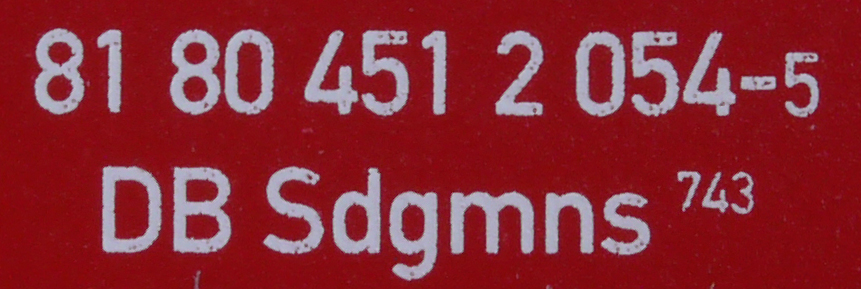 | • 81 80 451 2 054-5 | → | nákladní, s podvozky, ve vlastnictví železniční správy, pro mezinárodní dopravu dle zvláštních umluv |