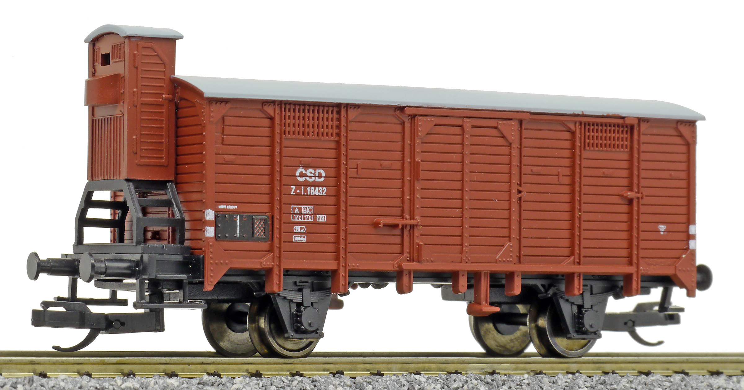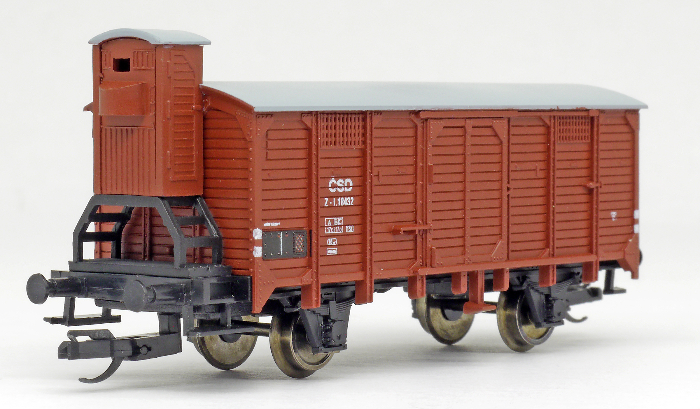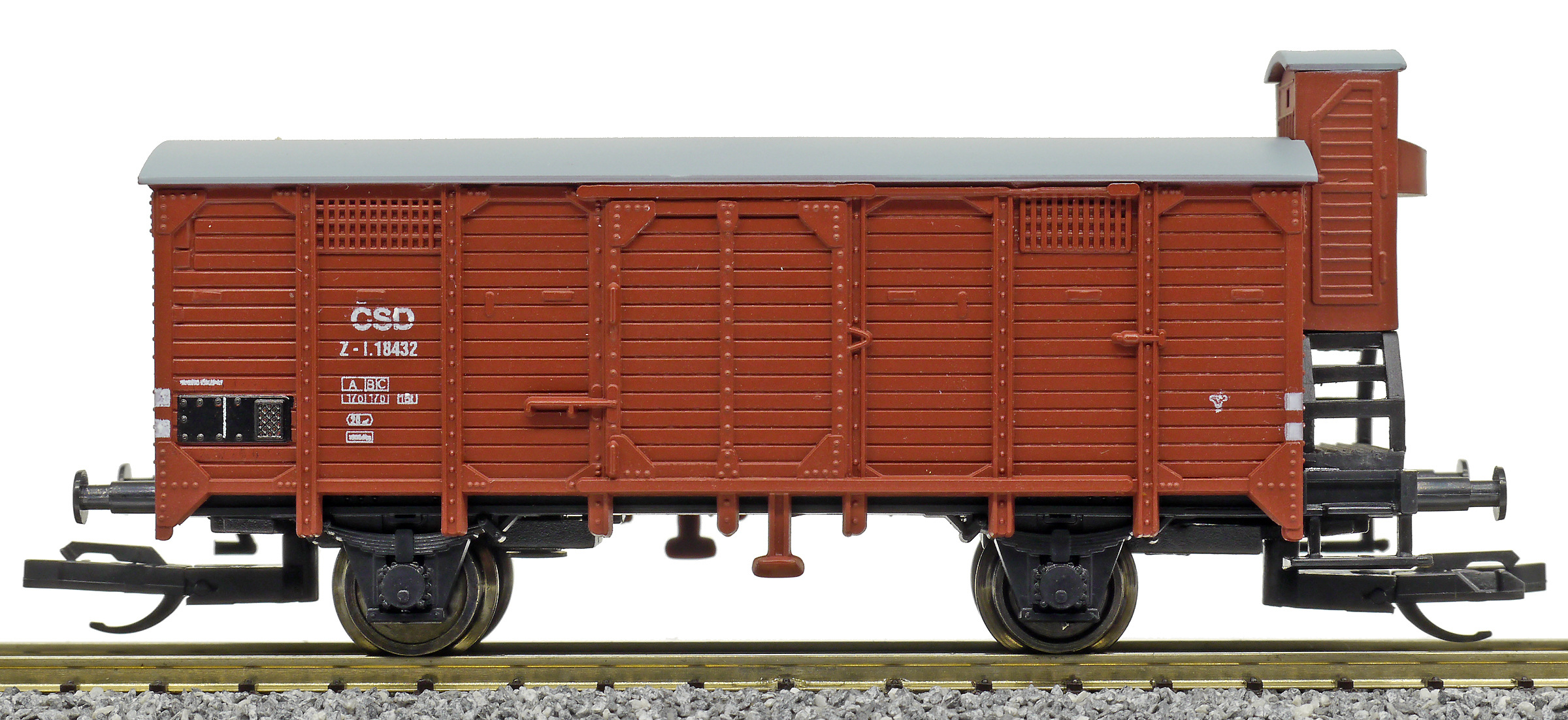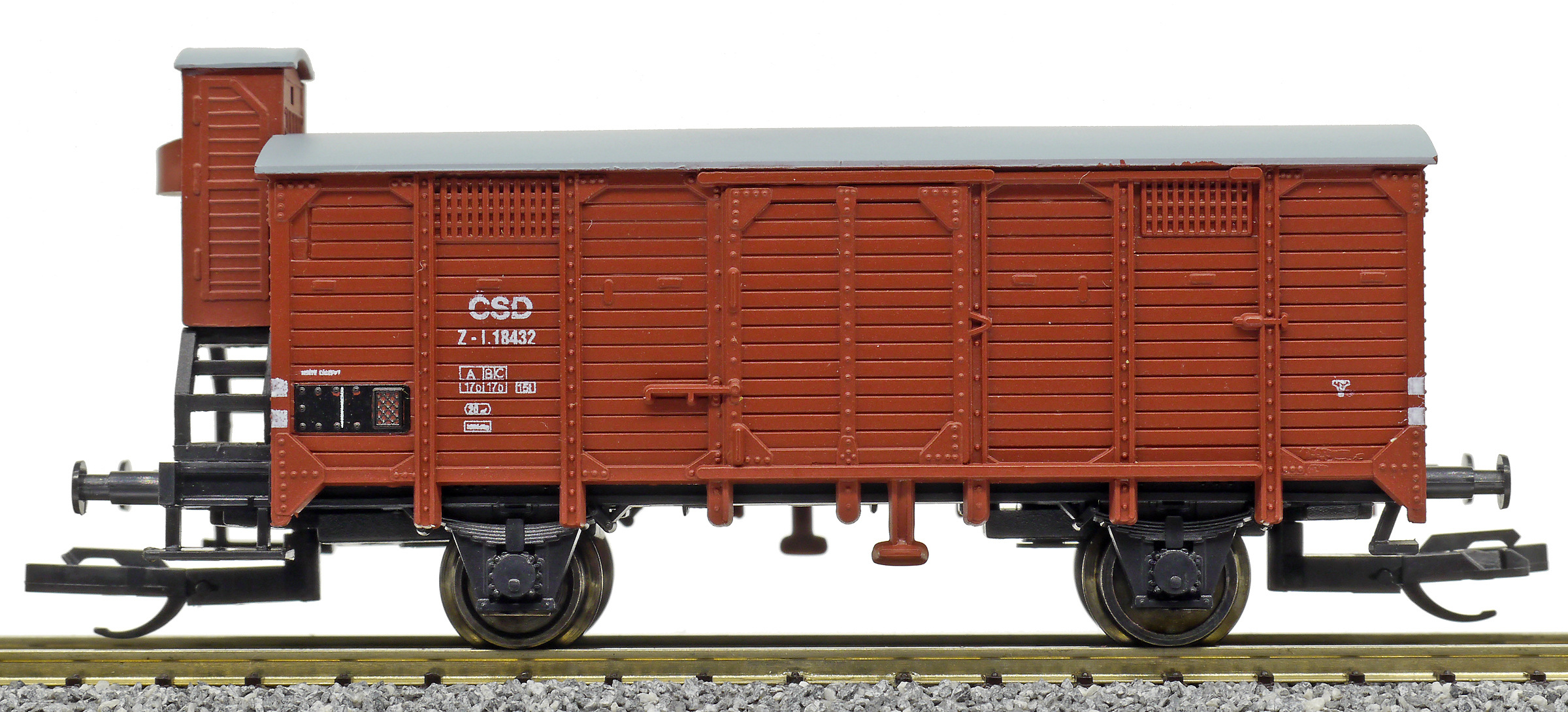 Popis   krytý nákladní vůz červenohnědý s brzdařskou budkou