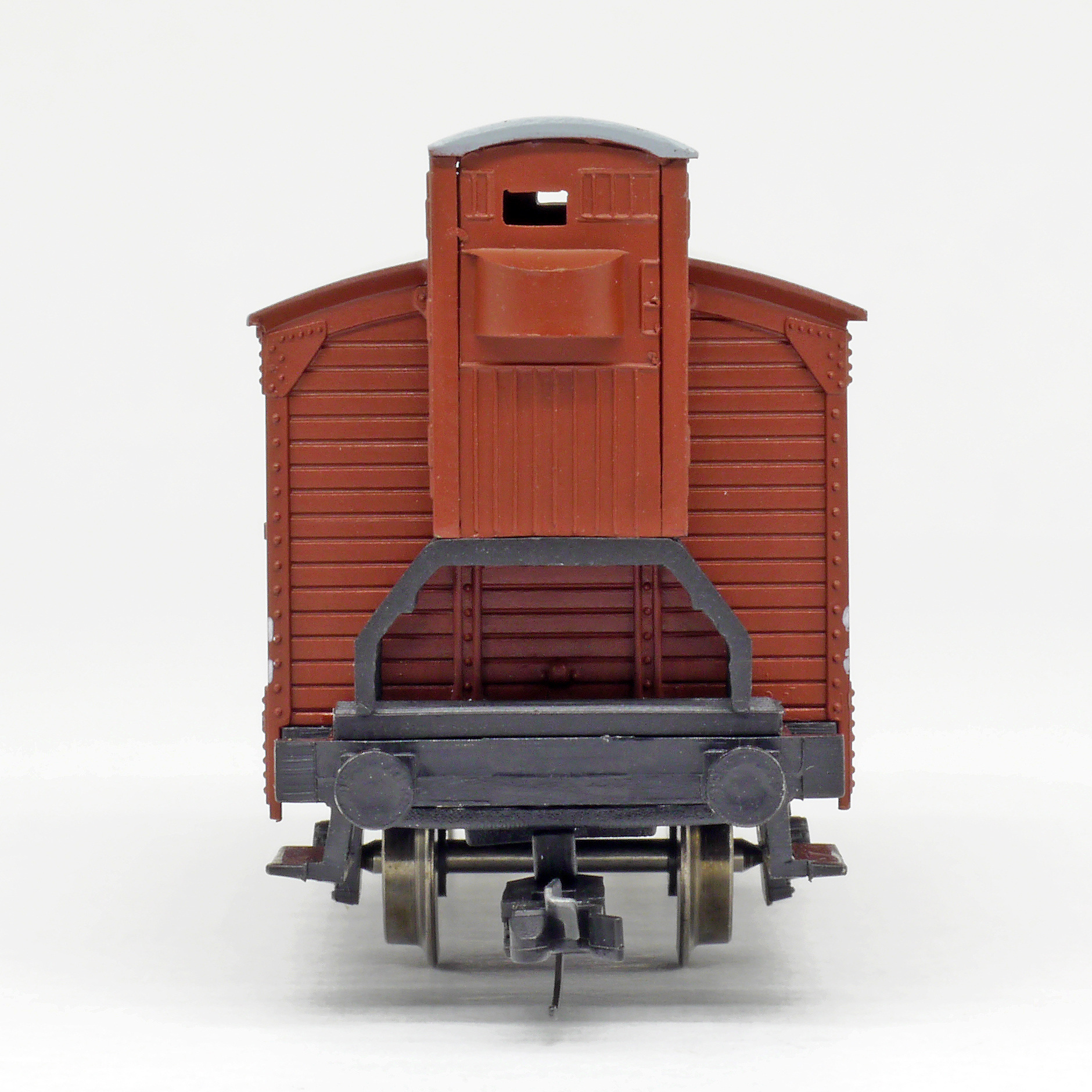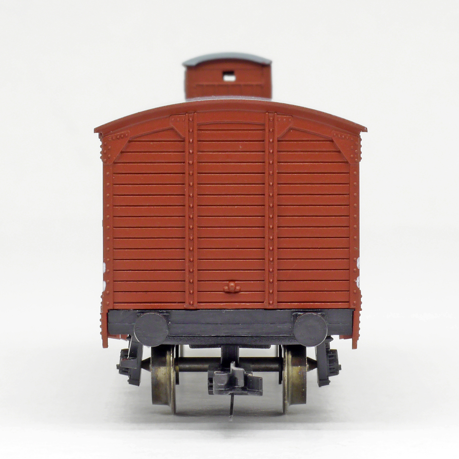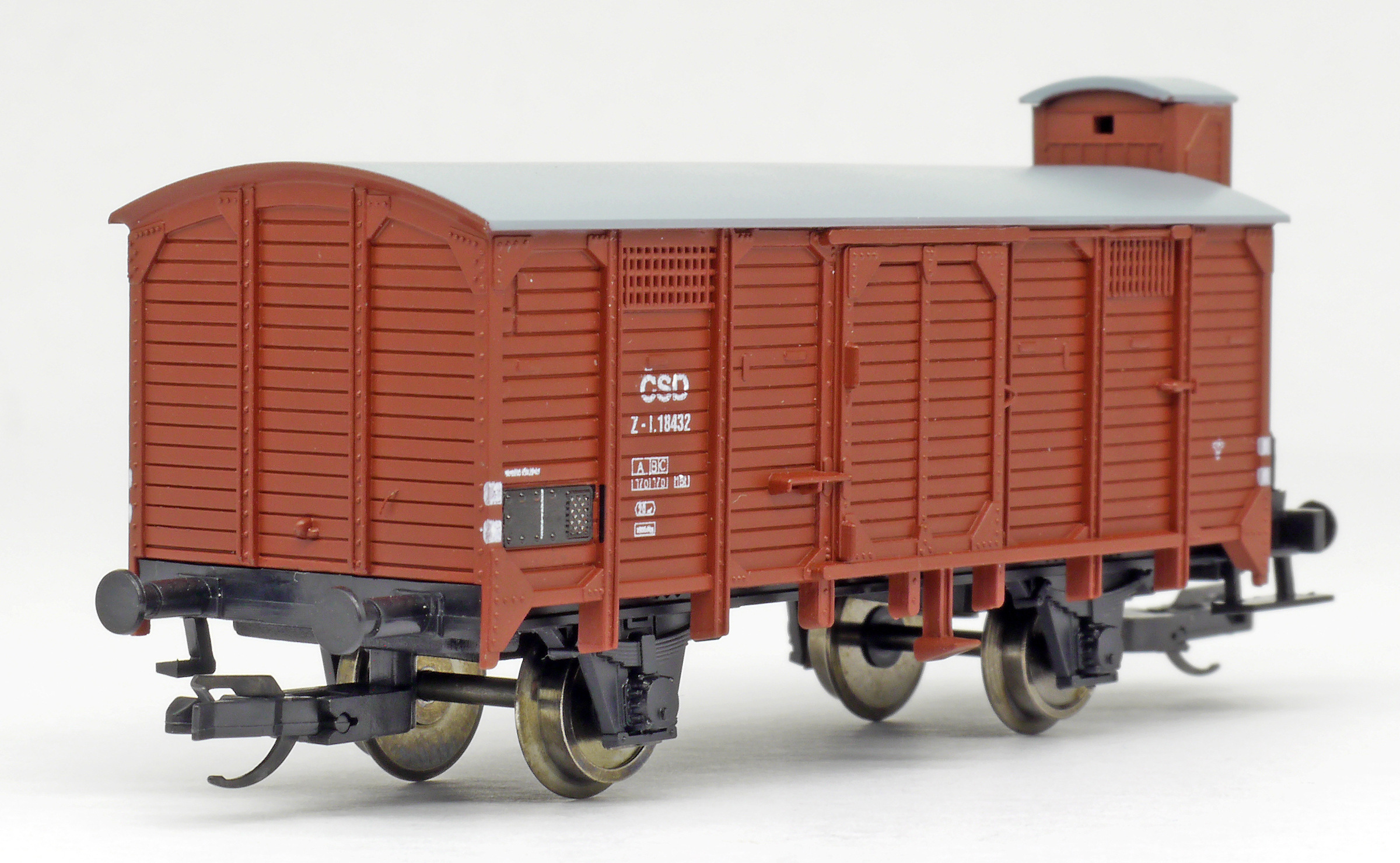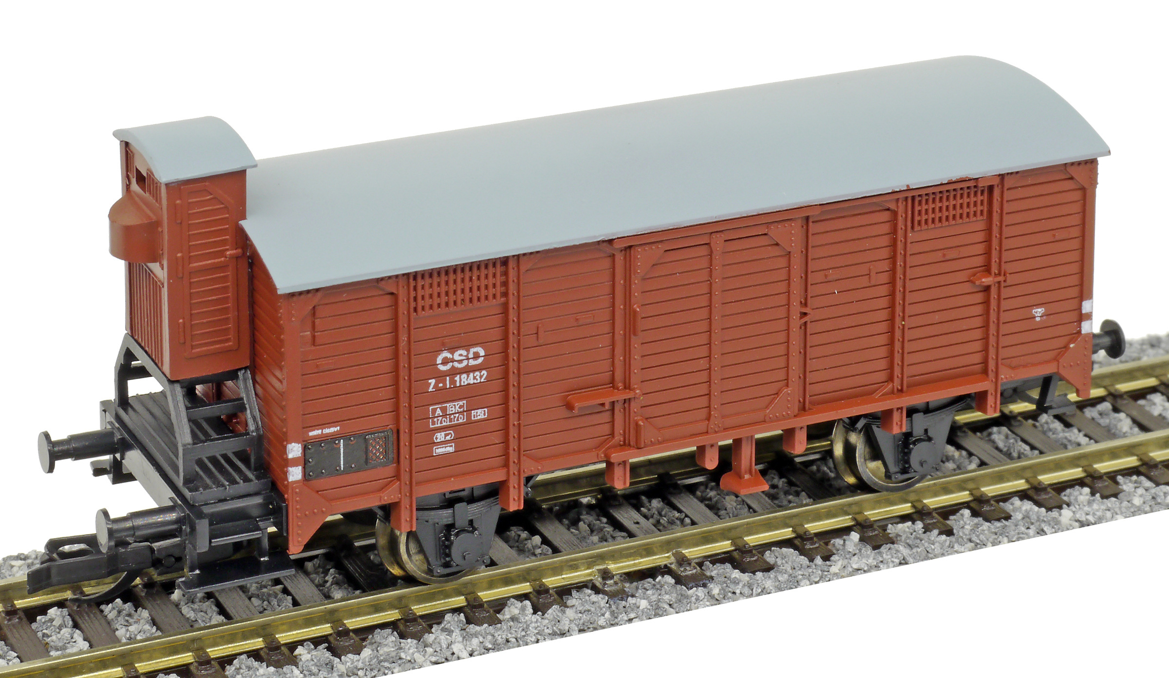 Popis   krytý nákladní vůz červenohnědý s brzdařskou budkou