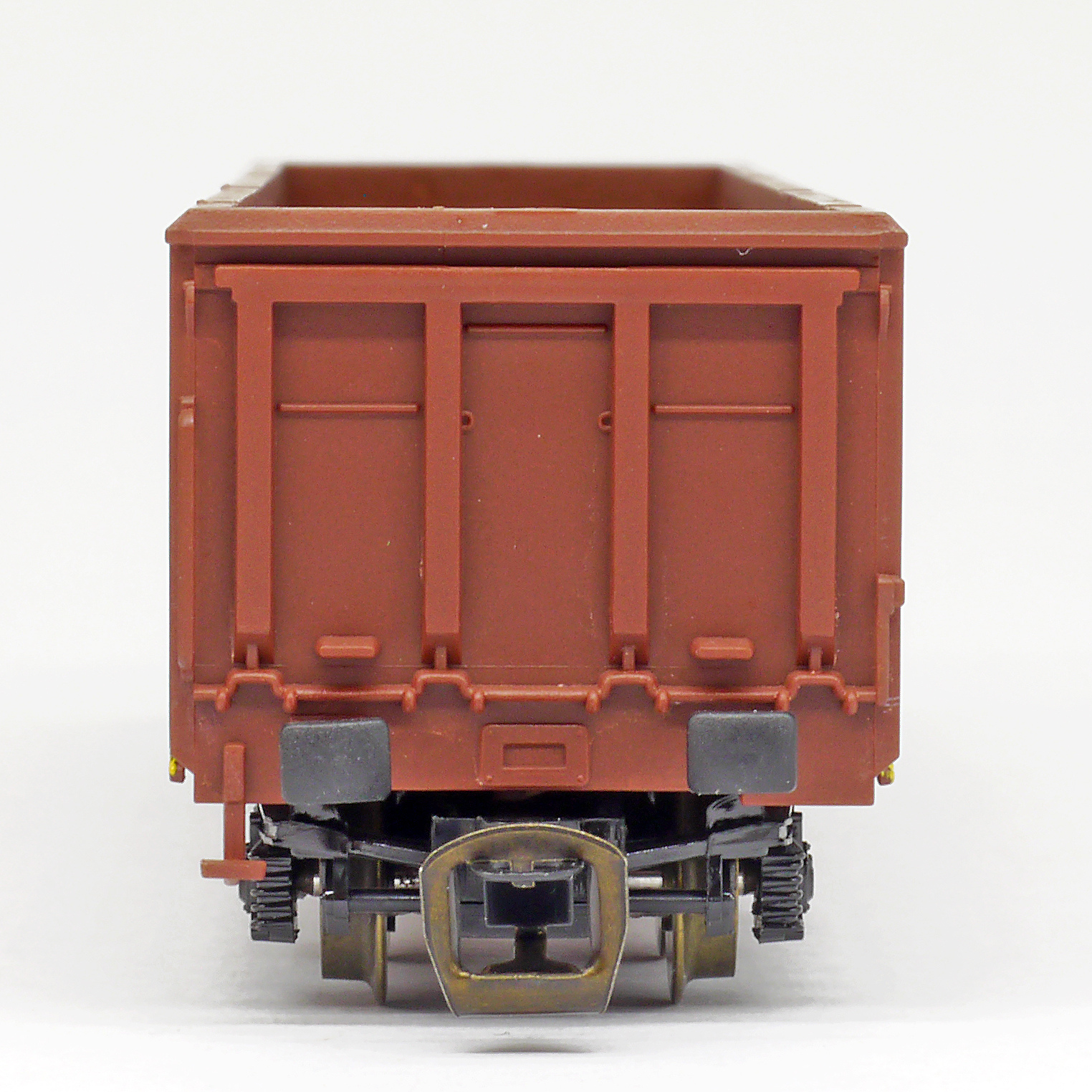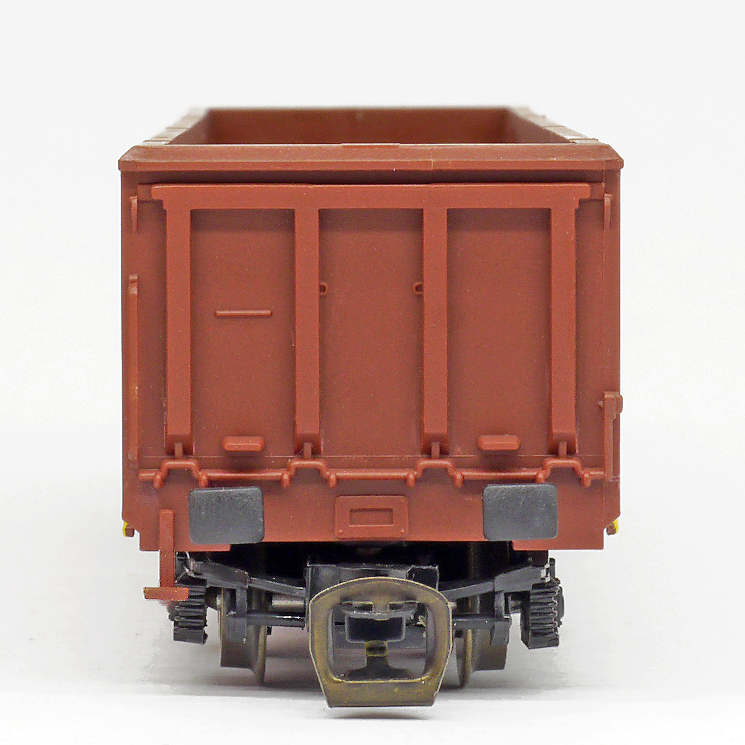 | vysokostěnný nákladní vůz červenohnědý, černé podvozky |