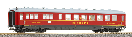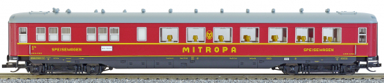 | jídelní vůz červený s šedou střechou „Mitropa“ |