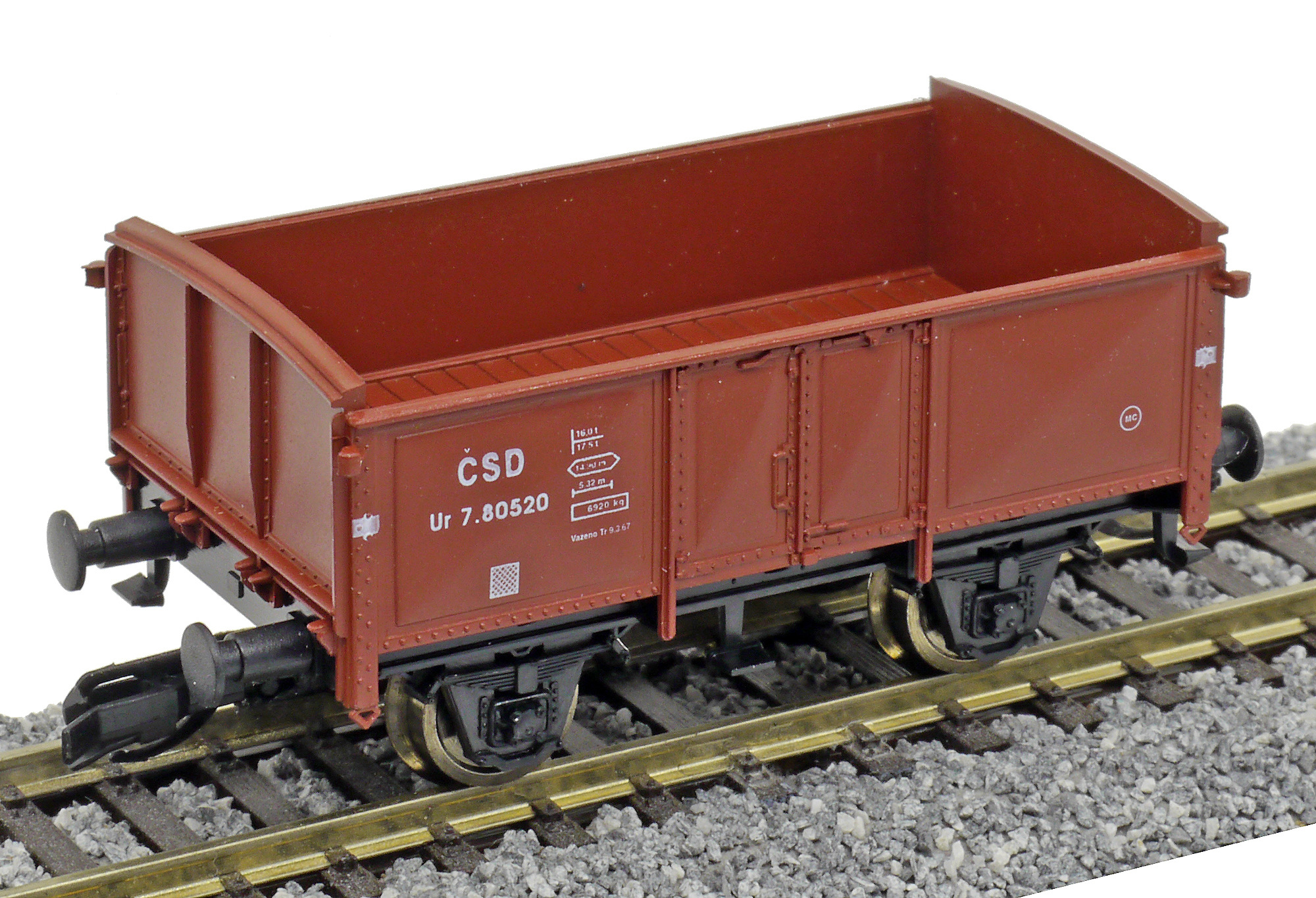 měřítko 1:120 - rozchod kolejí 12 mm kinematika krátkého spřáhla (KKK) podle normy NEM 358 55 mm - celková délka modelu přes nárazníky 2 - celkový počet náprav nebo rozložení náprav 16 g - hmotnost brutto - model včetně prodejního obalu 10 g - hmotnost netto - pouze model