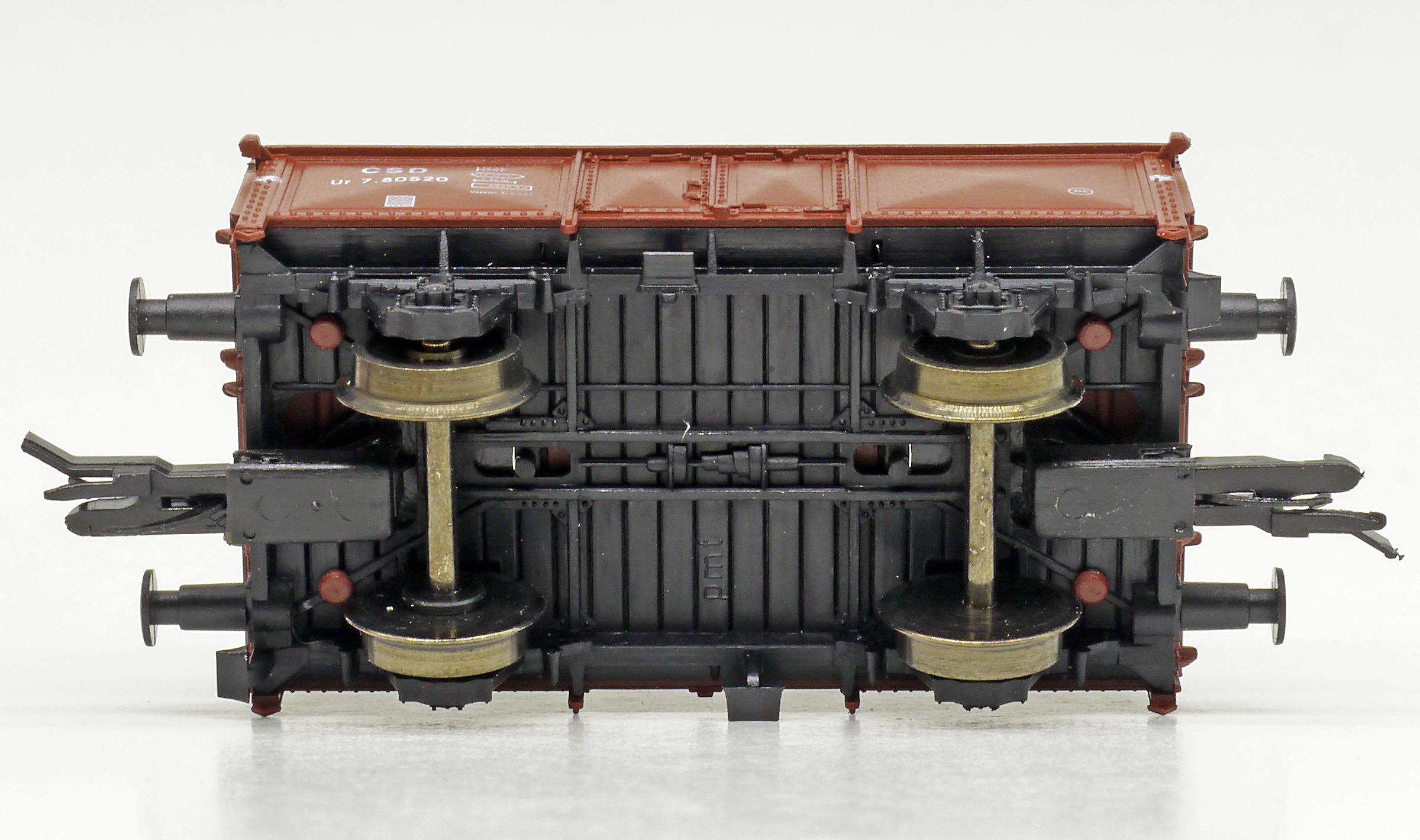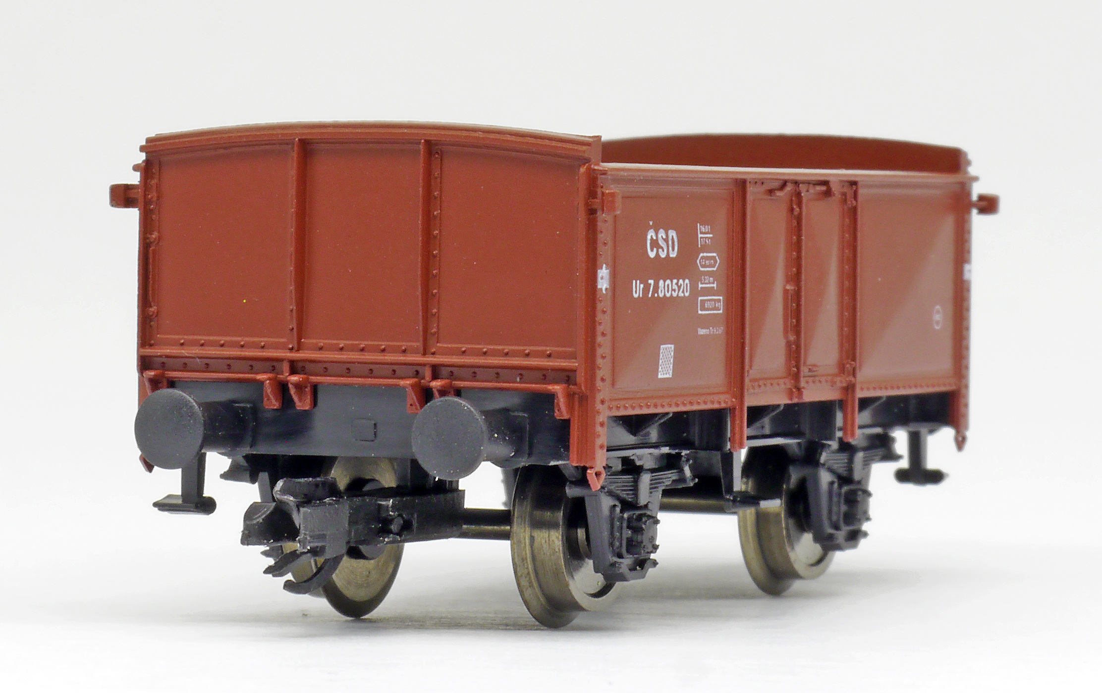 | otevřený nákladní vůz červenohnědý, černý pojezd |