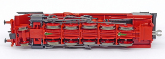 Popis   parní lokomotiva černá s červeným pojezdem a kouřovými plechy