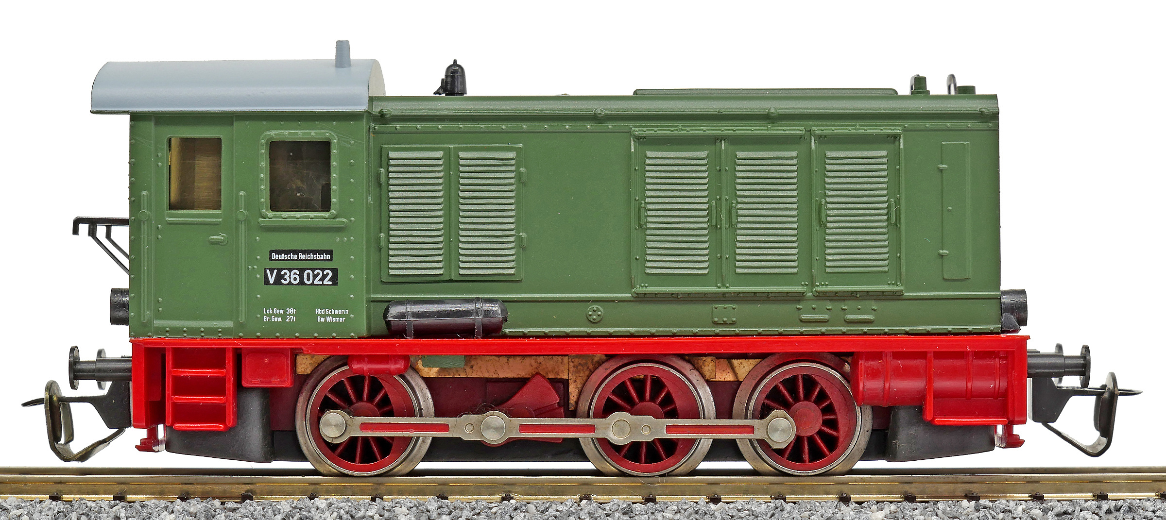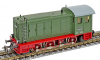 | dieselová lokomotiva zelená s červeným pojezdem |