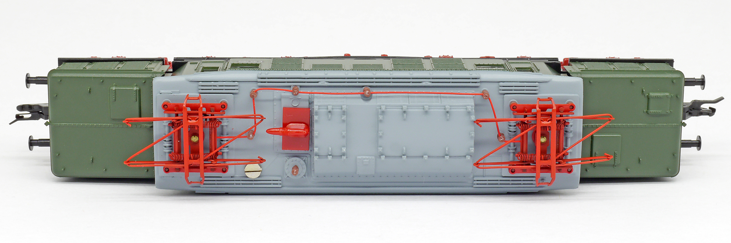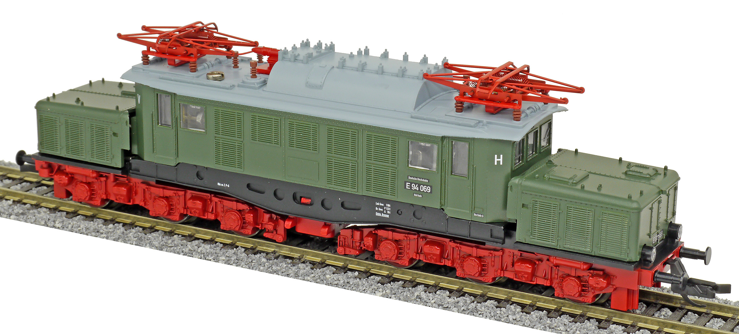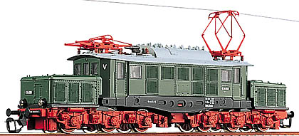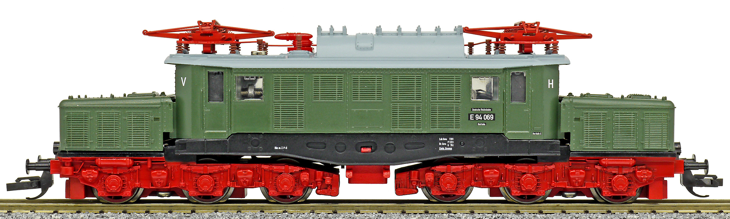 Popis   elektrická lokomotiva zelená s červenými podvozky