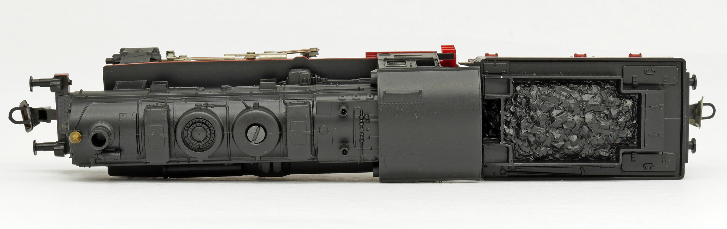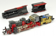 Popis   parní lokomotiva černá s červeným pojezdem