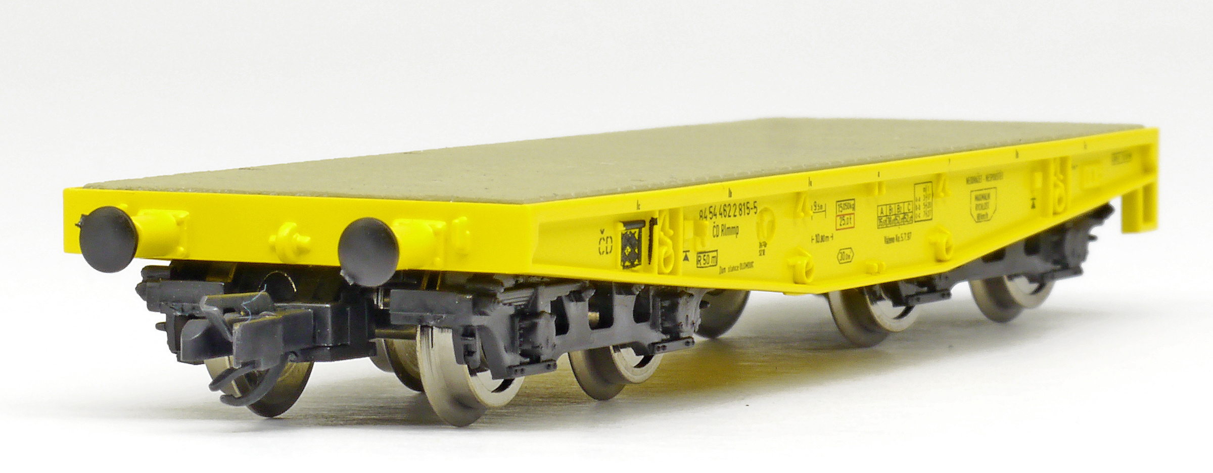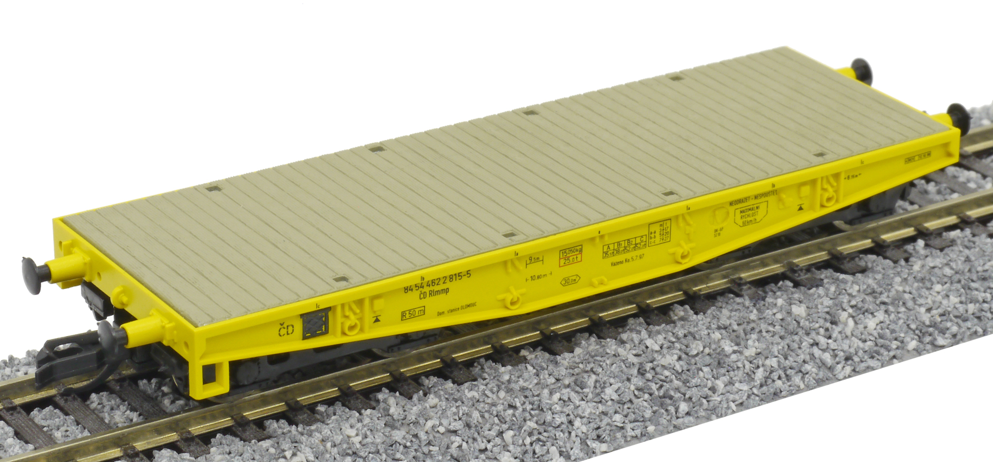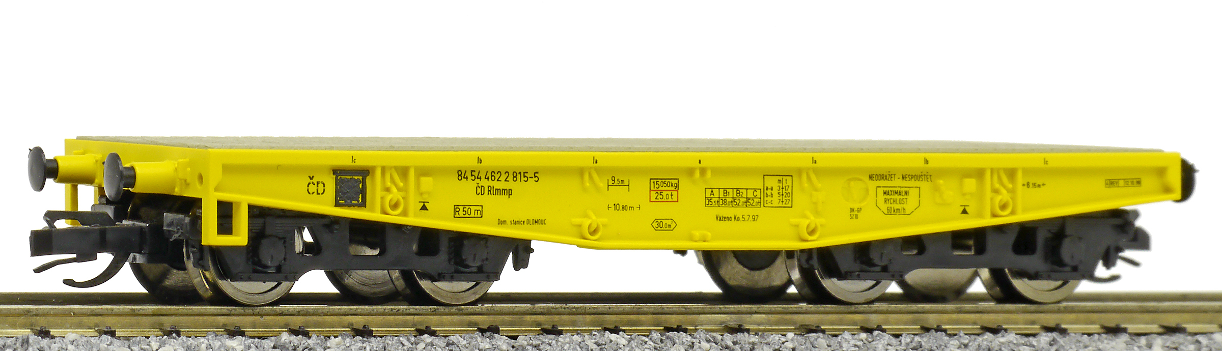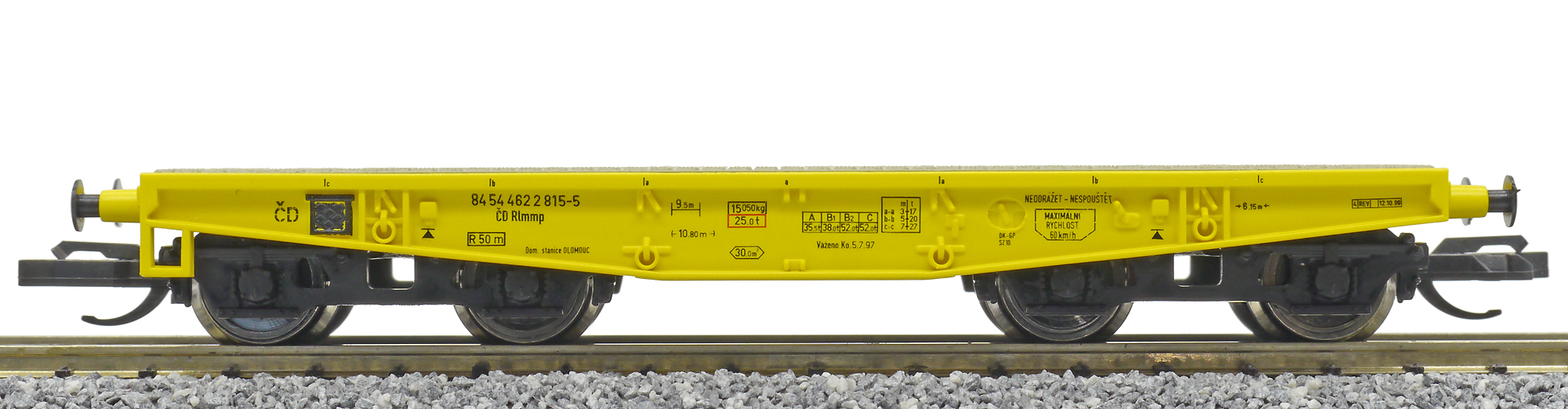 měřítko 1:120 - rozchod kolejí 12 mm kinematika krátkého spřáhla (KKK) podle normy NEM 358 90 mm - celková délka modelu přes nárazníky 4 - celkový počet náprav nebo rozložení náprav