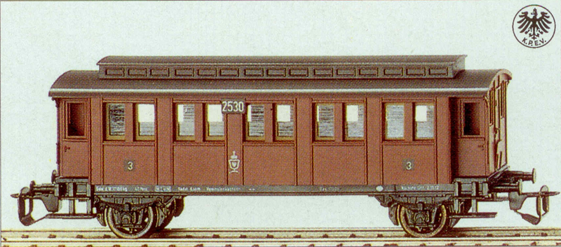 osobní vůz červený s černou střechou 3. tř.