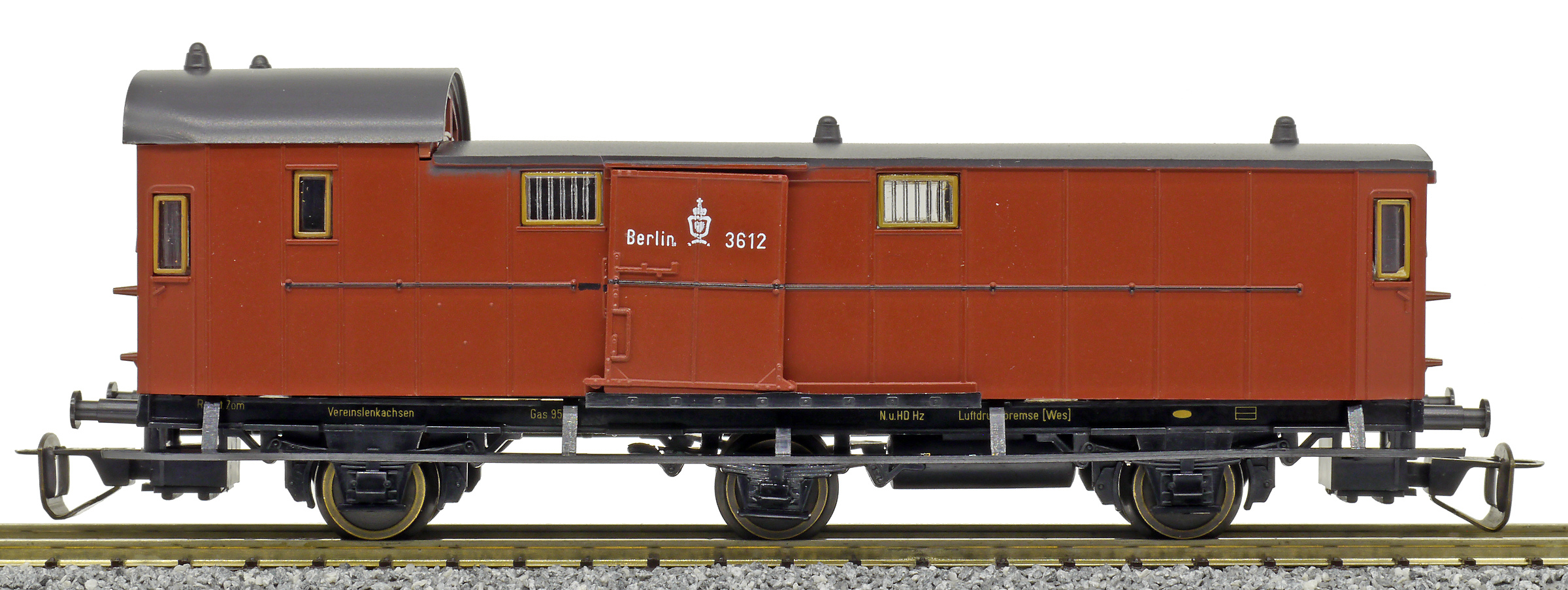 zavazadlový vůz červenohnědý s černou střechou