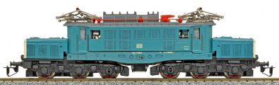 Popis   elektrická lokomotiva modrá s bílými čely a černými podvozky