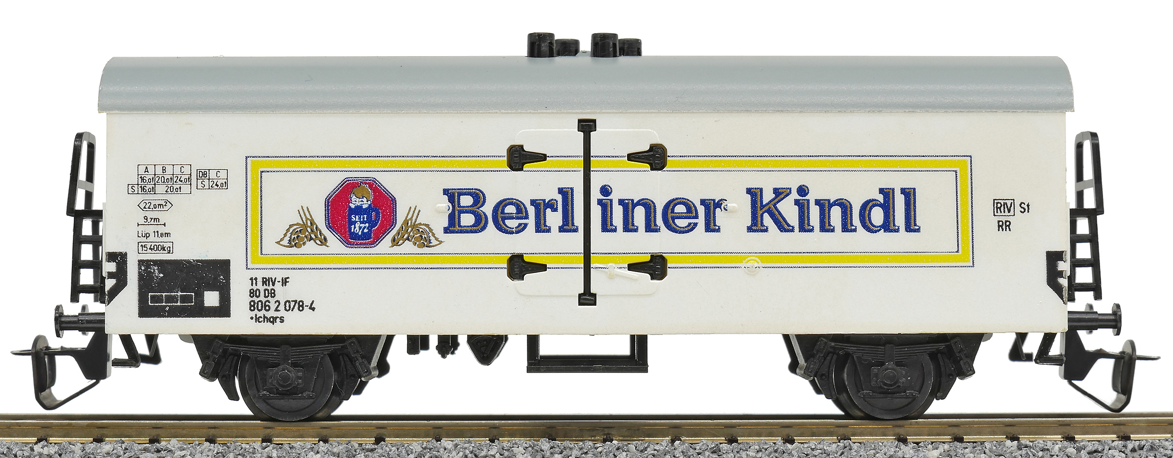 | nákladní chladící vůz bílý s šedou střechou „Berliner Kindl“ |