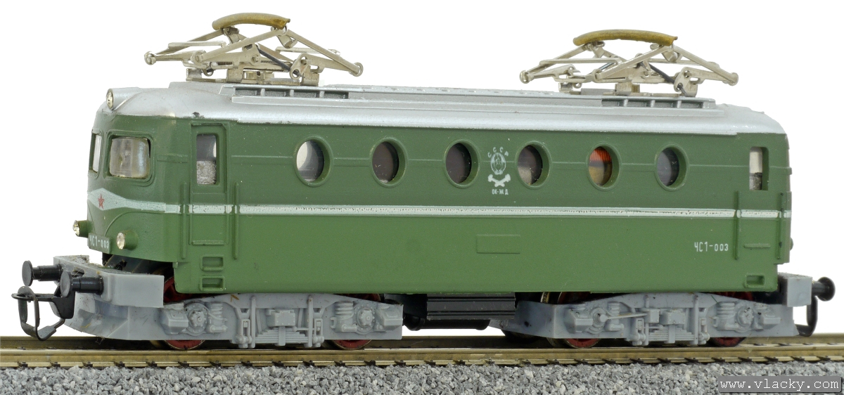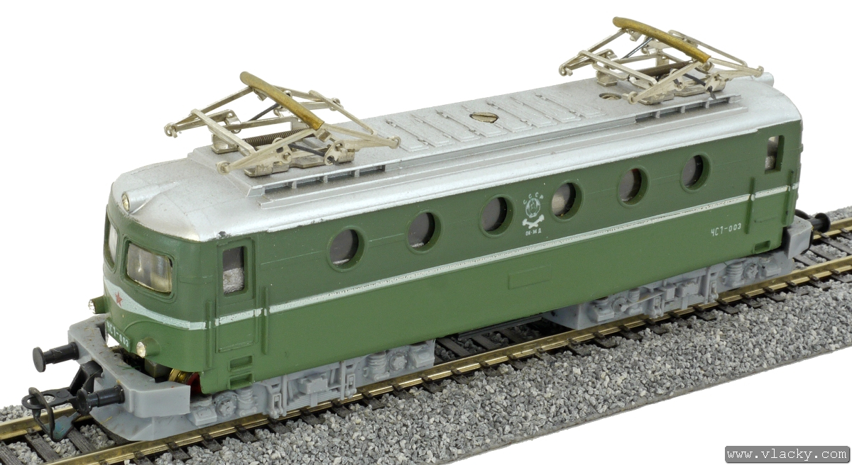 Popis   elektrická lokomotiva zelená-hráškově zelená s šedou střechou
