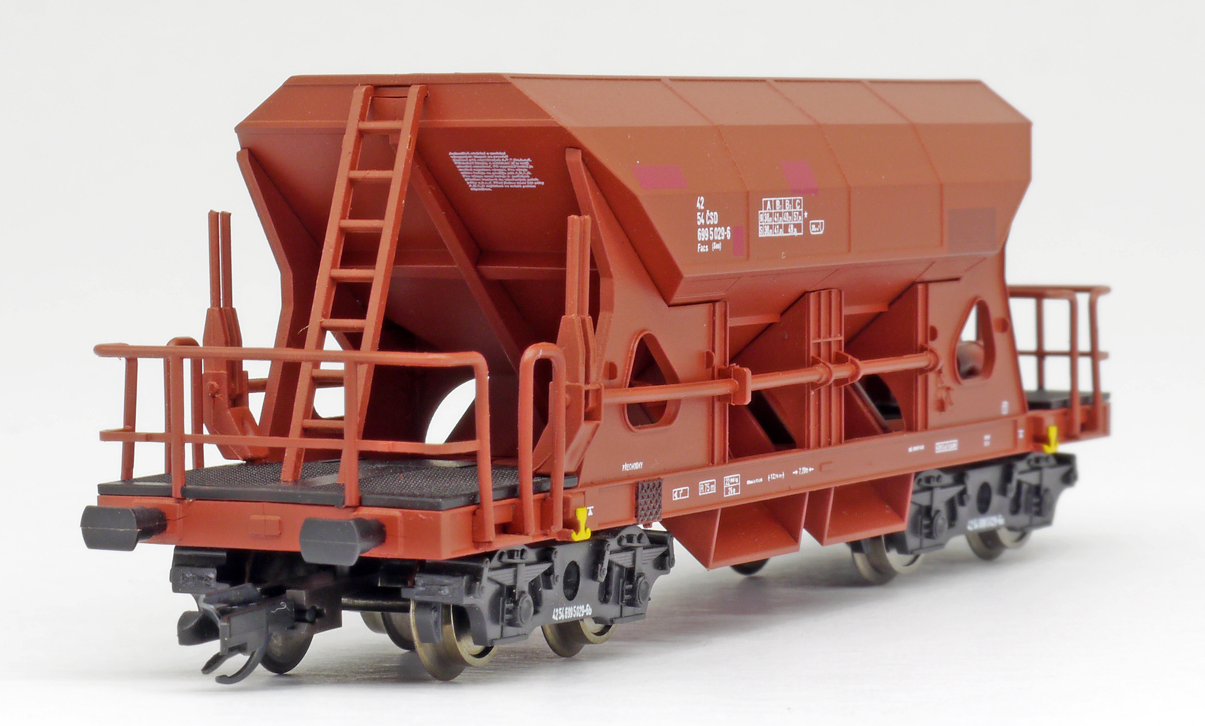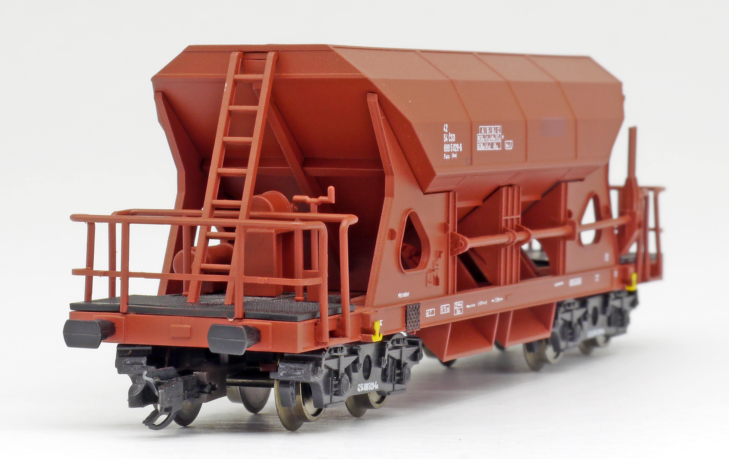 | nákladní samovýsypný vůz červenohnědý s opravnými fleky, černé plošinky |