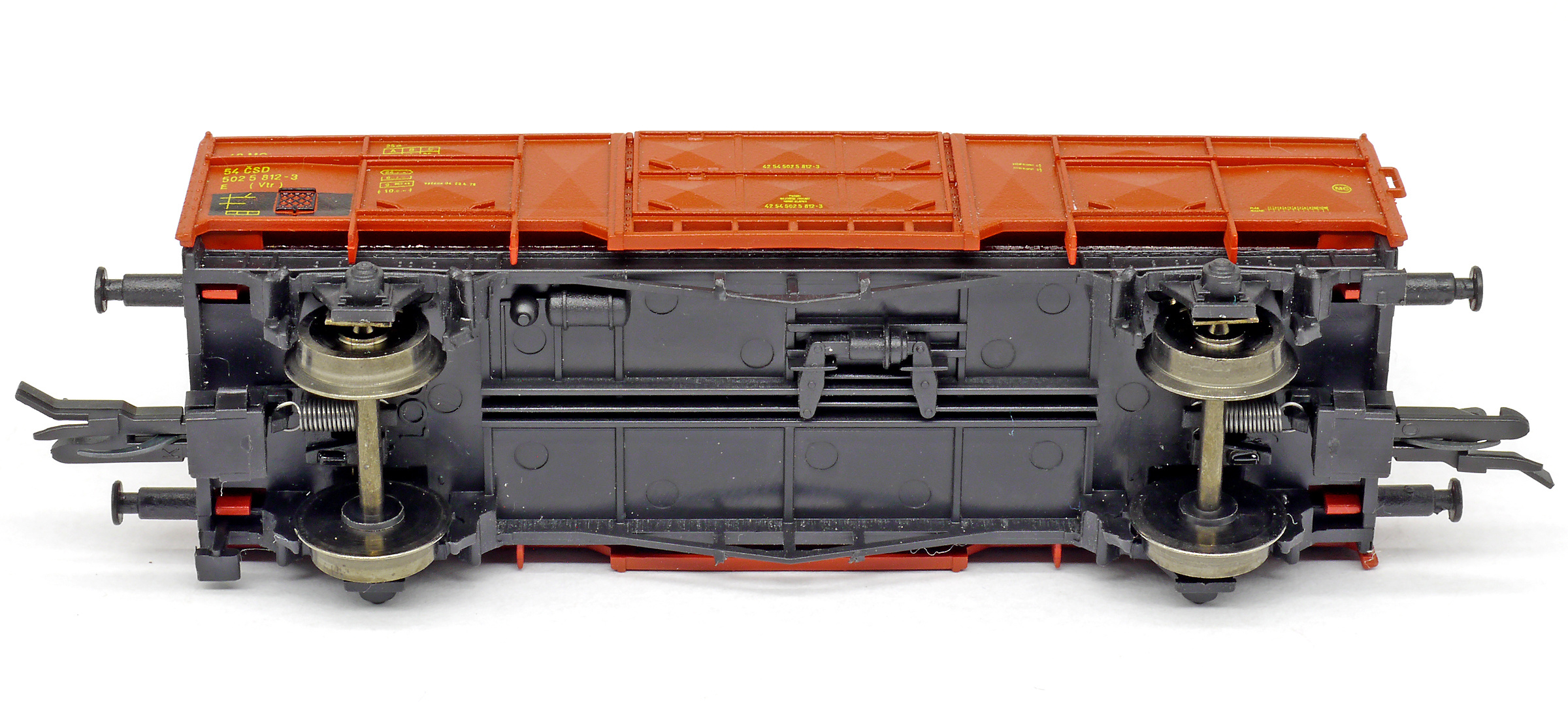 | otevřený nákladní vůz červenohnědý, žluté popisy |