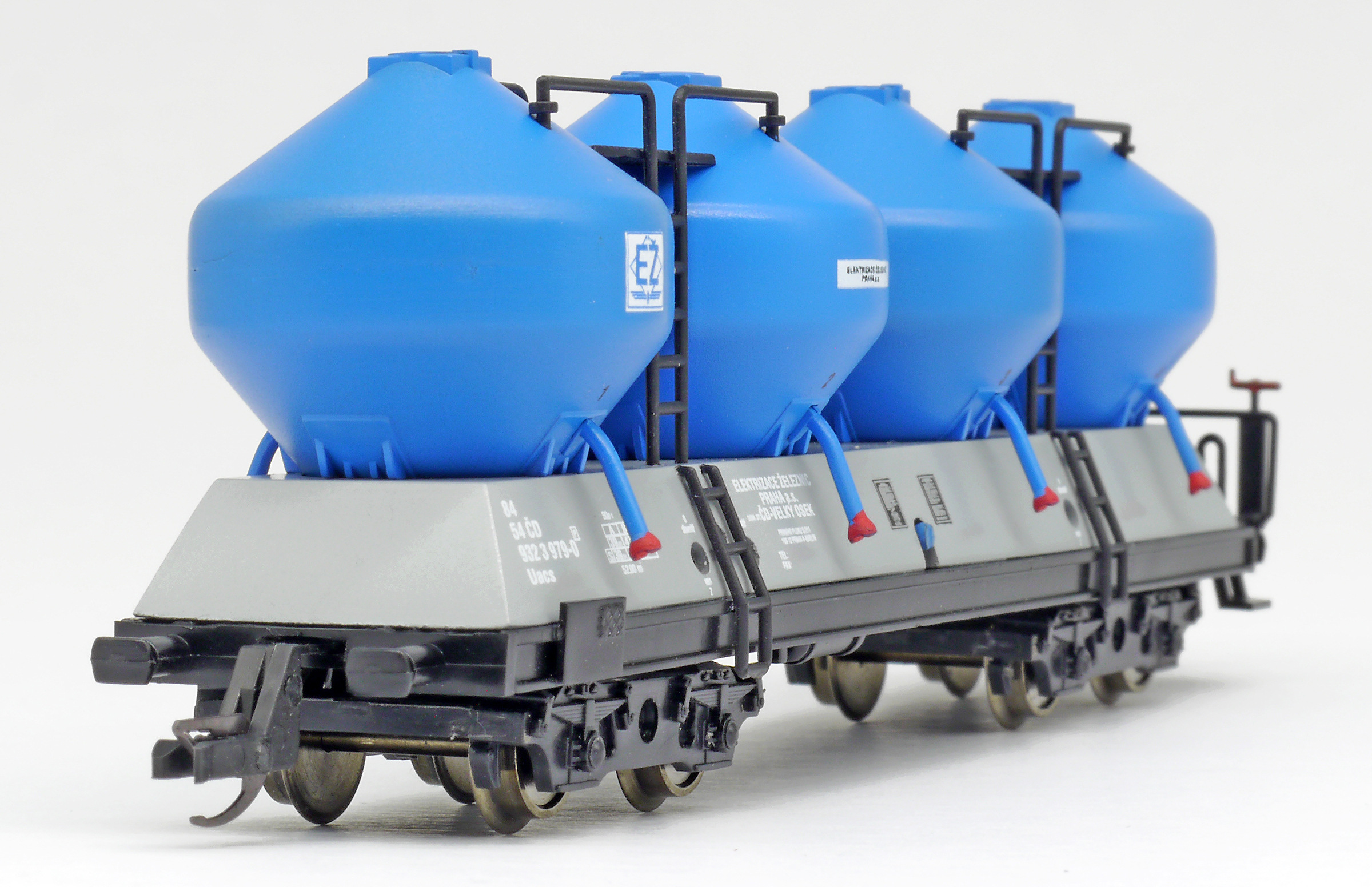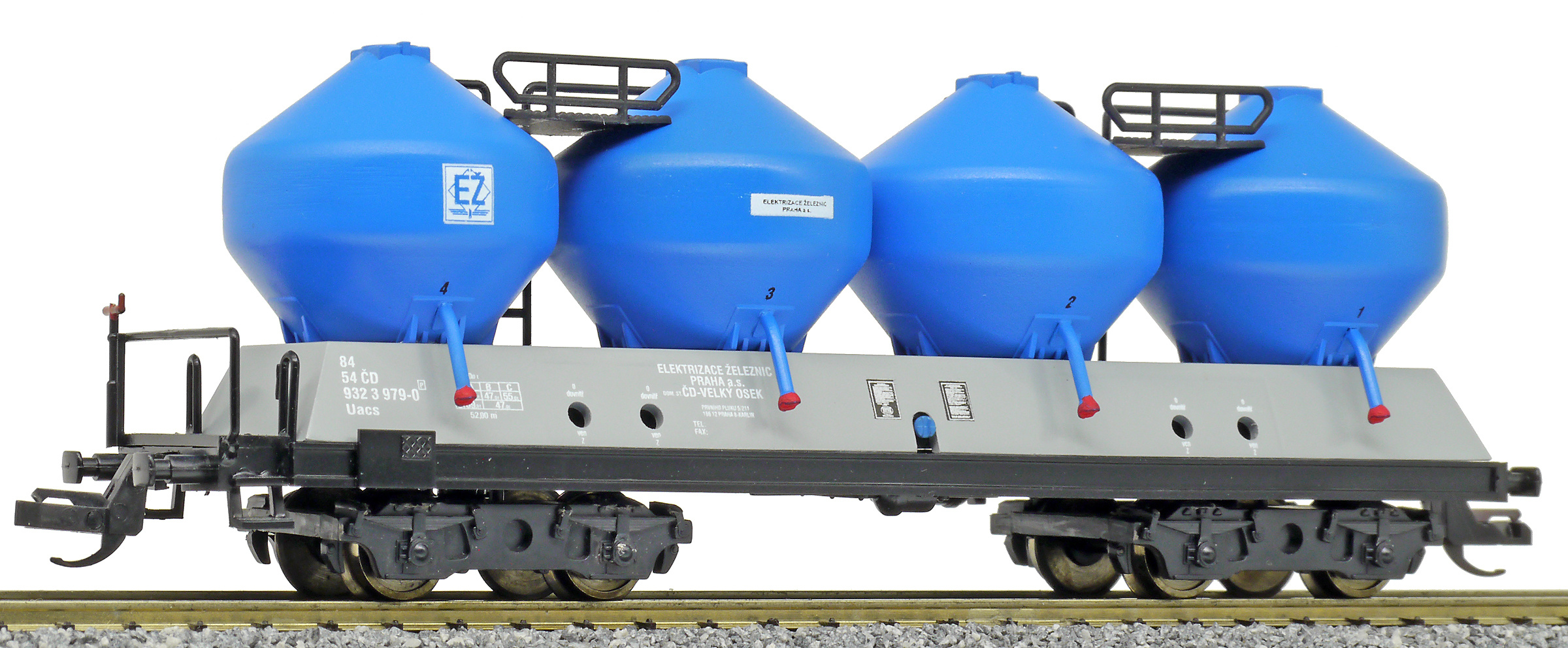 | samovýsypný nákladní vůz šedý s modrými nádobami „Elektrizace železnic“ |