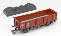| otevřený nákladní vůz červenohnědý s nákladem uhlí |