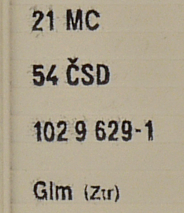 | • 21 54 102 9 629-1 | → | ČSD - Československé státní dráhy |