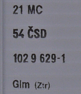 | • 21 54 102 9 629-1 | → | ČSD - Československé státní dráhy |
