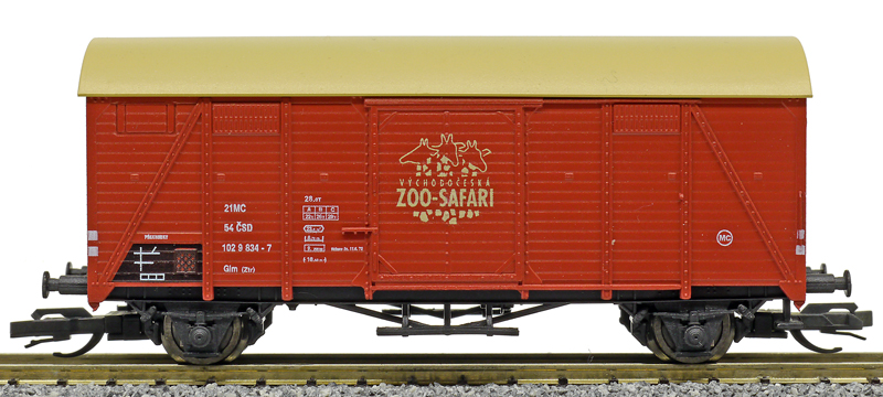 | krytý nákladní vůz červenohnědý s okrovou střechou „ZOO - Safari” |