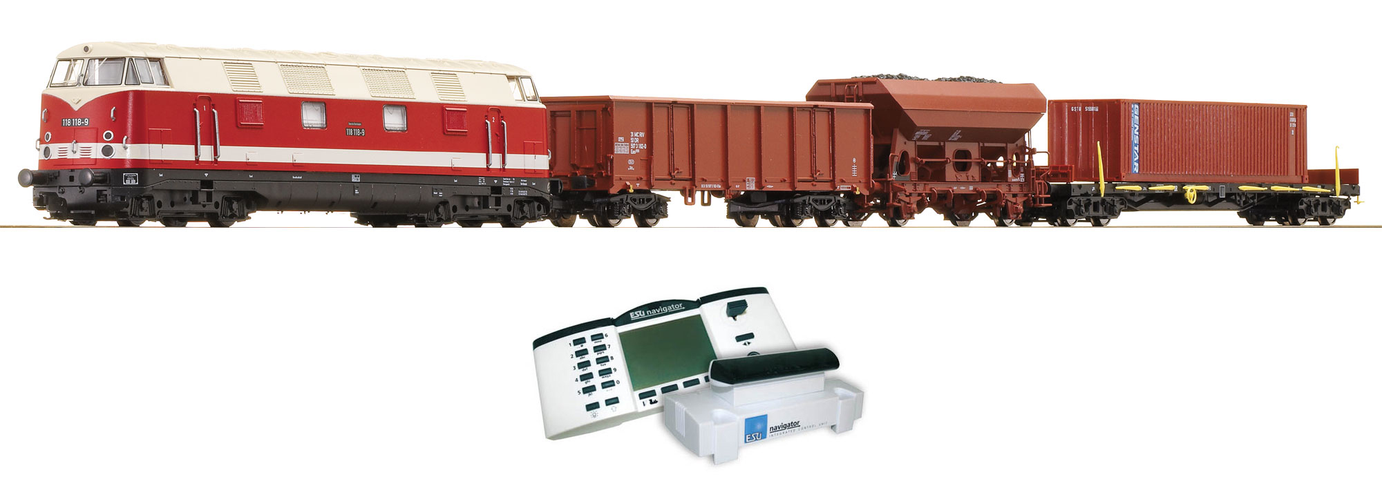 | set dieselové lokomotivy BR 118 a tří nákladních vozů |