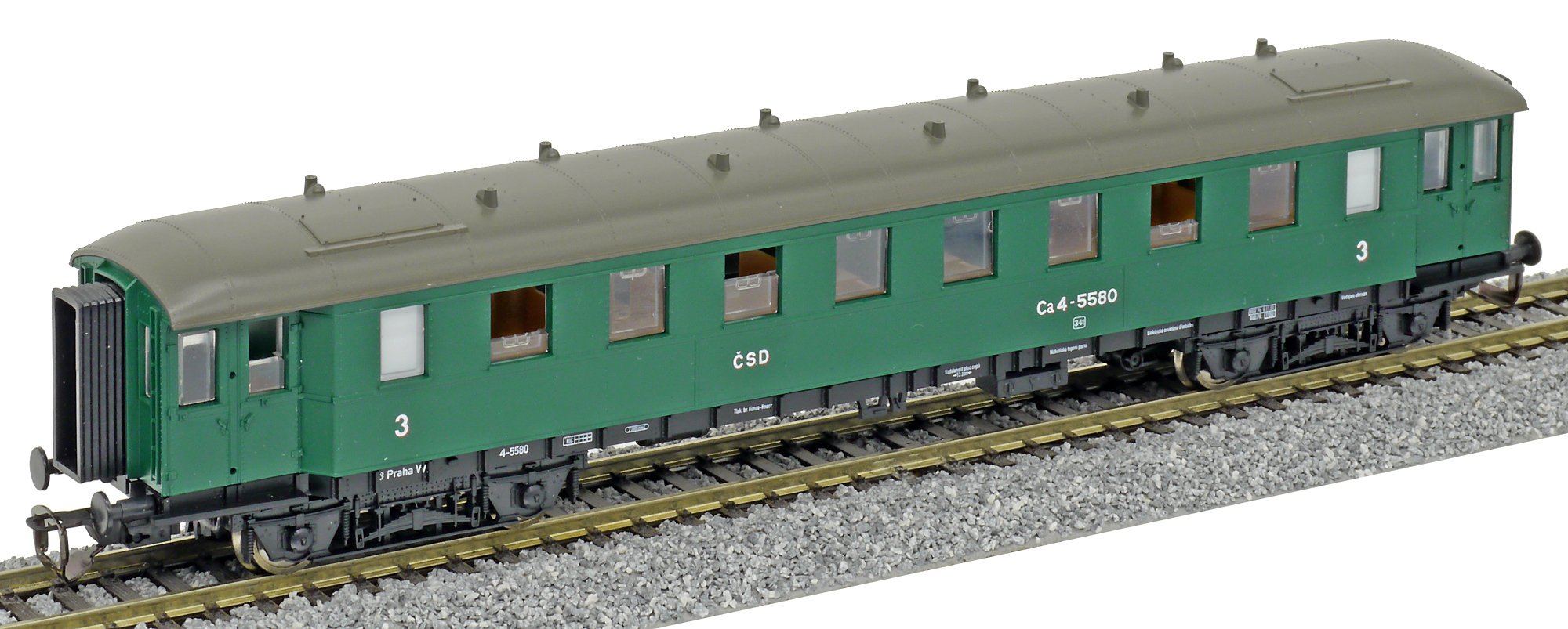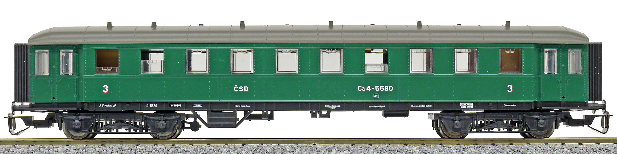 | osobní vůz zelený s šedou střechou 3. tř. |