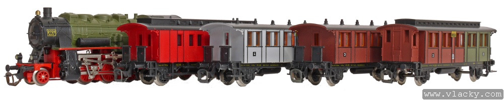 | set parní lokomotivy BR 56, jednoho zavazadlového a tří osobních vozů |