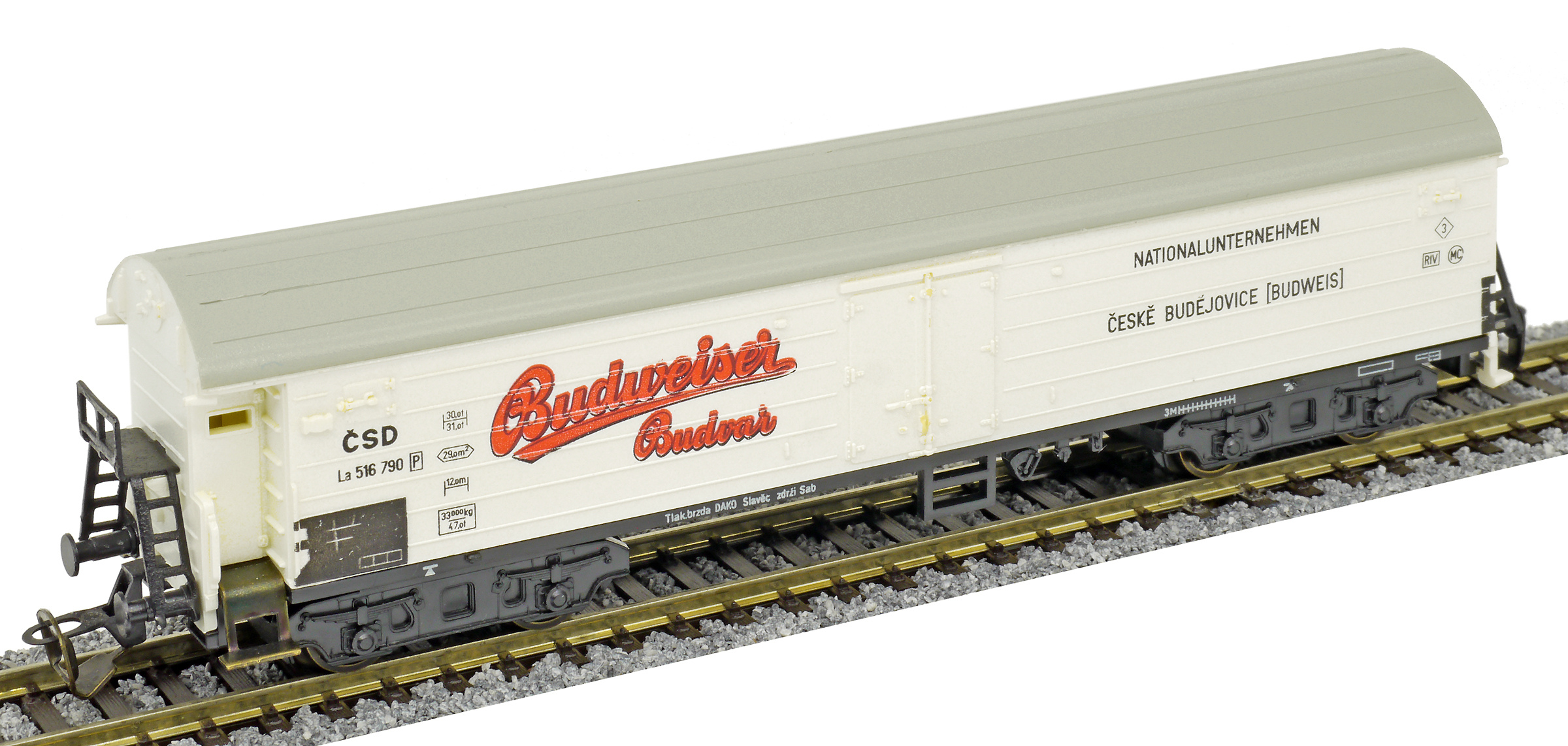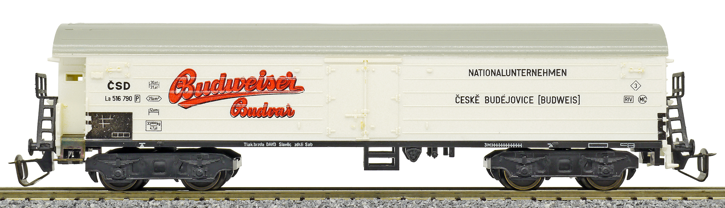 nákladní chladící vůz bílý s šedou střechou „Budweiser-Budvar“