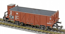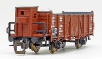 | otevřený nákladní vůz červenohnědý s brzdařskou budkou |