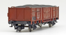 | otevřený nákladní vůz červenohnědý s patinou a nákladem „Do pánve“ |