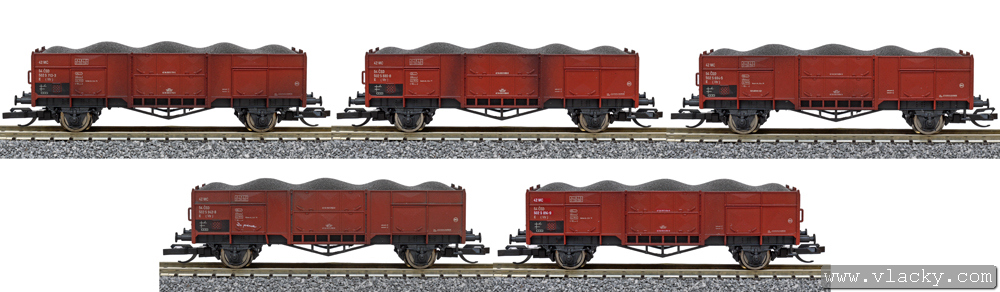 | set pěti nákladních otevřených vozů s nákladem |