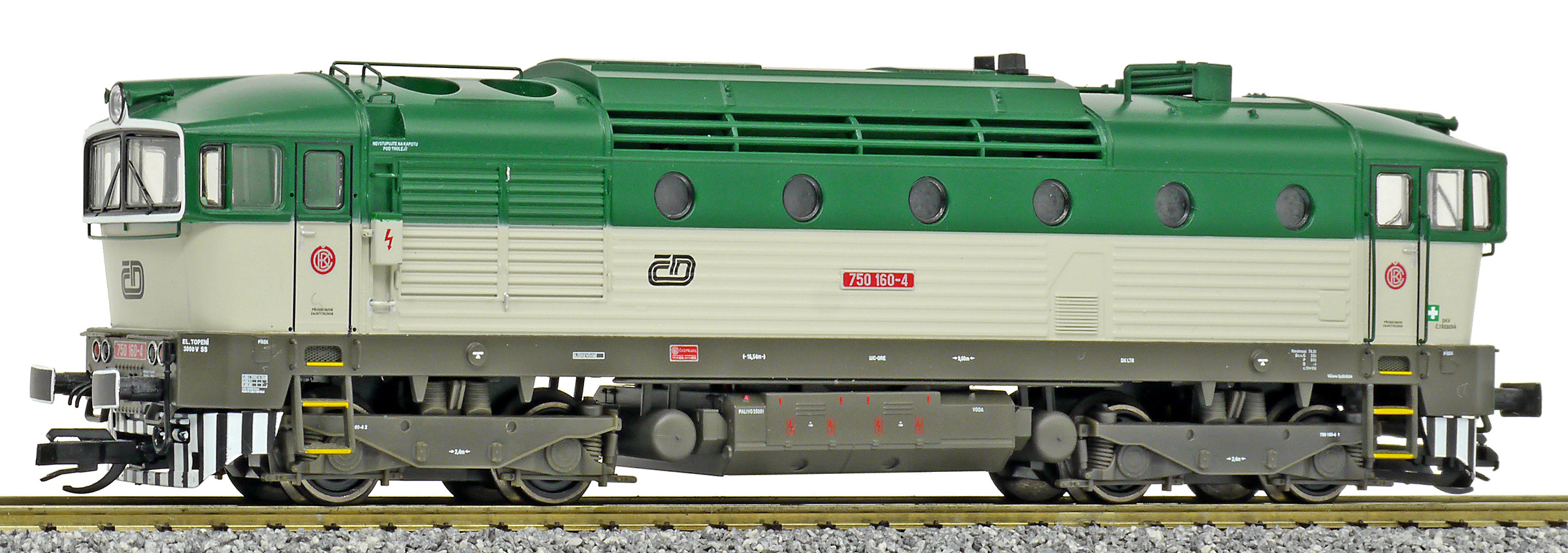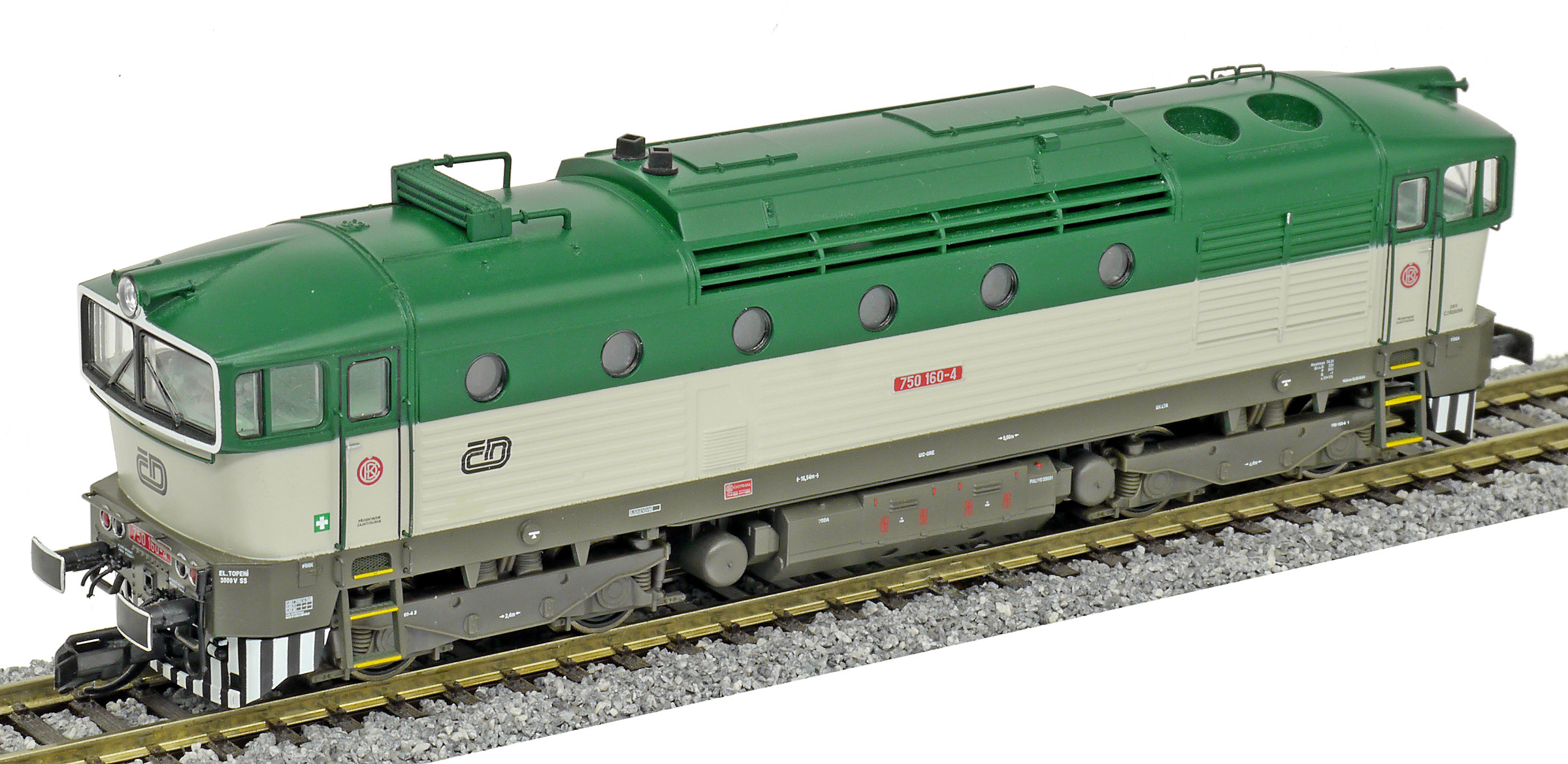 měřítko 1:120 - rozchod kolejí 12 mm osvětlení - 3 reflektory vpředu, 2 světla vzadu, přepínatelné podle směru jízdy 4 hnané nápravy 2 bandážované nápravy kinematika krátkého spřáhla (KKK) podle normy NEM 358 digitální rozhraní podle NEM 651 s konektorem 6pin setrvačník 138 mm - celková délka modelu přes nárazníky 4 - celkový počet náprav nebo rozložení náprav 340 g - hmotnost brutto - model včetně prodejního obalu 185 g - hmotnost netto - pouze model