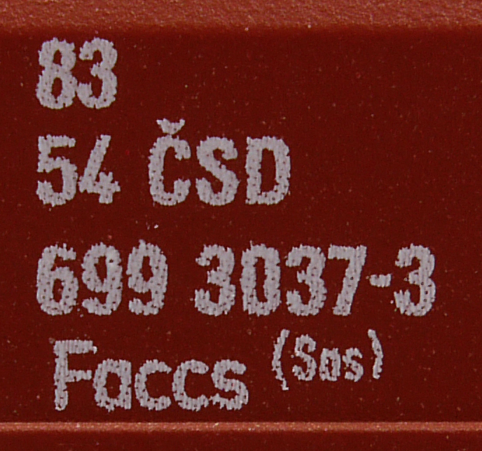 | • 83 54 699 3037-3 | → | ČSD - Československé státní dráhy |