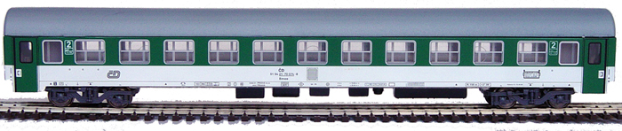 | rychlíkový vůz zelený-bílý s šedou střechou, 2. tř. |