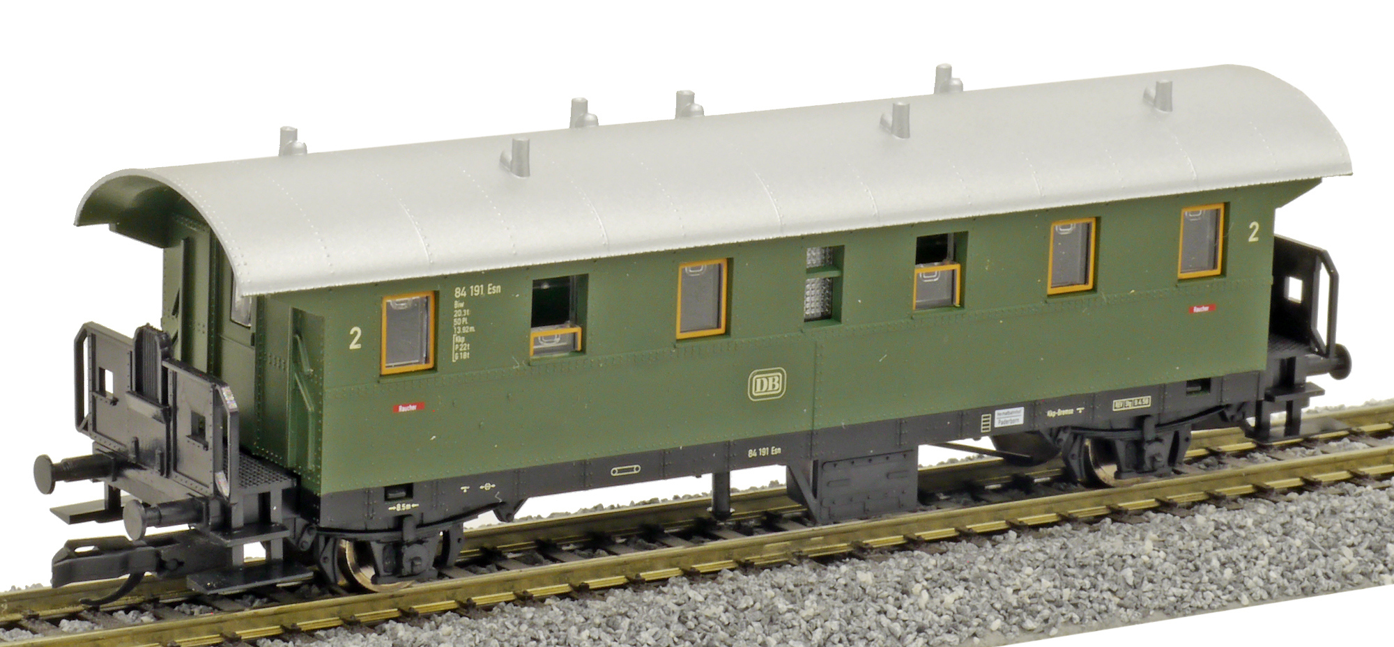 osobní vůz zelený s šedou střechou 2. tř.