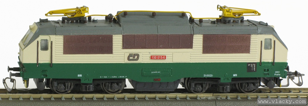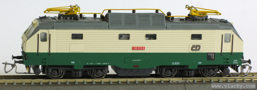 | zelená-krémová s šedou střechou, žluté polopantografy |