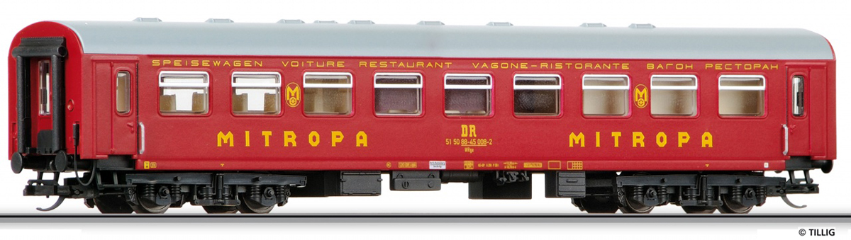 | červený s šedou střechou jídelní vůz "Mitropa" |