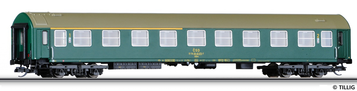 | rychlíkový vůz zelený s šedou střechou 1./2. tř. |