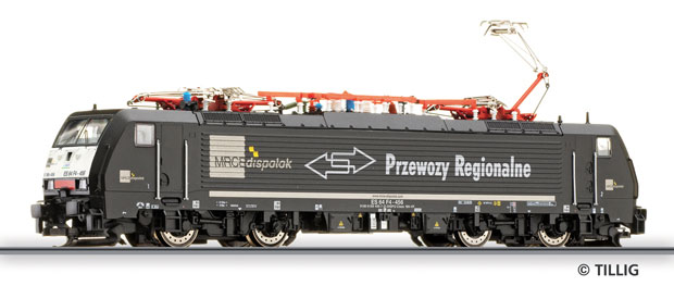 | elektrická lokomotiva černá s bílými čely PR (Prezewozy Regionalne) |